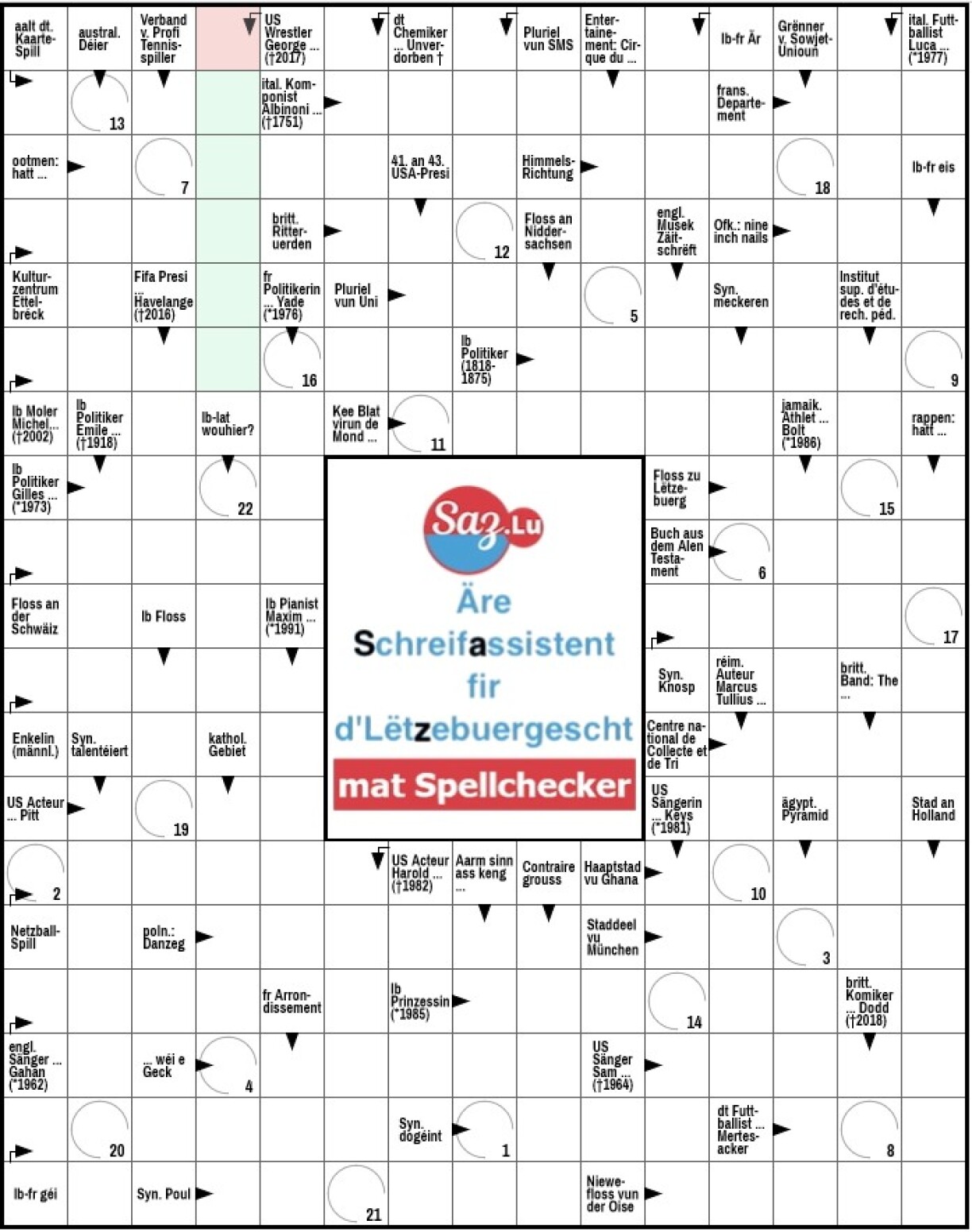 Nummer 396En neit Online-Kräizwuerträtsel ganz op Lëtzebuergesch