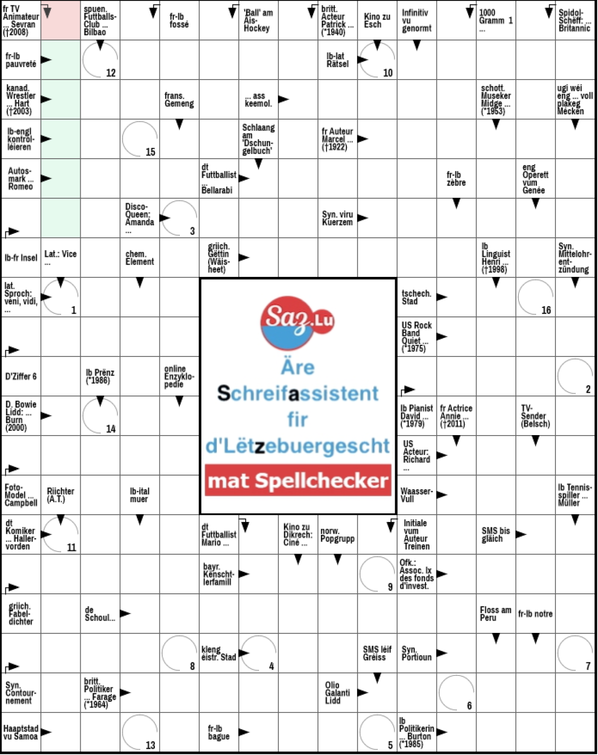 Nummer 397En neit Online-Kräizwuerträtsel ganz op Lëtzebuergesch