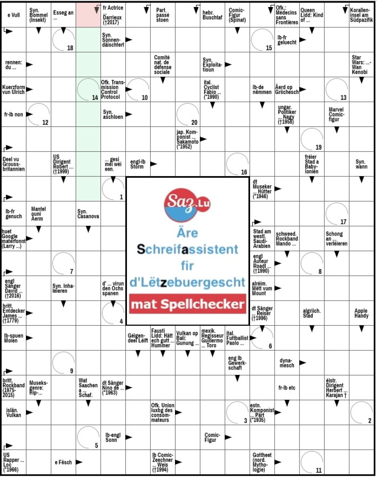 Nummer 401En neit Online-Kräizwuerträtsel ganz op Lëtzebuergesch