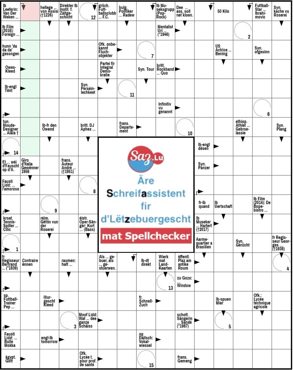 Nummer 405En neit Online-Kräizwuerträtsel ganz op Lëtzebuergesch