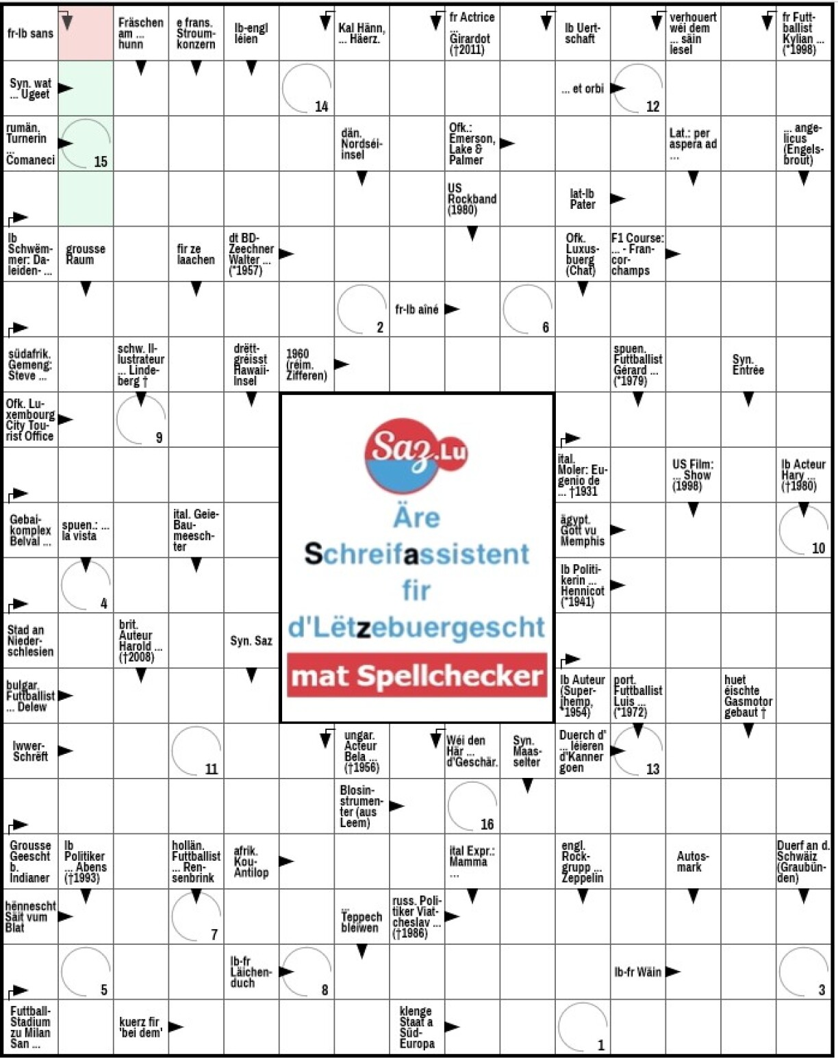 Nummer 406En neit Online-Kräizwuerträtsel ganz op Lëtzebuergesch