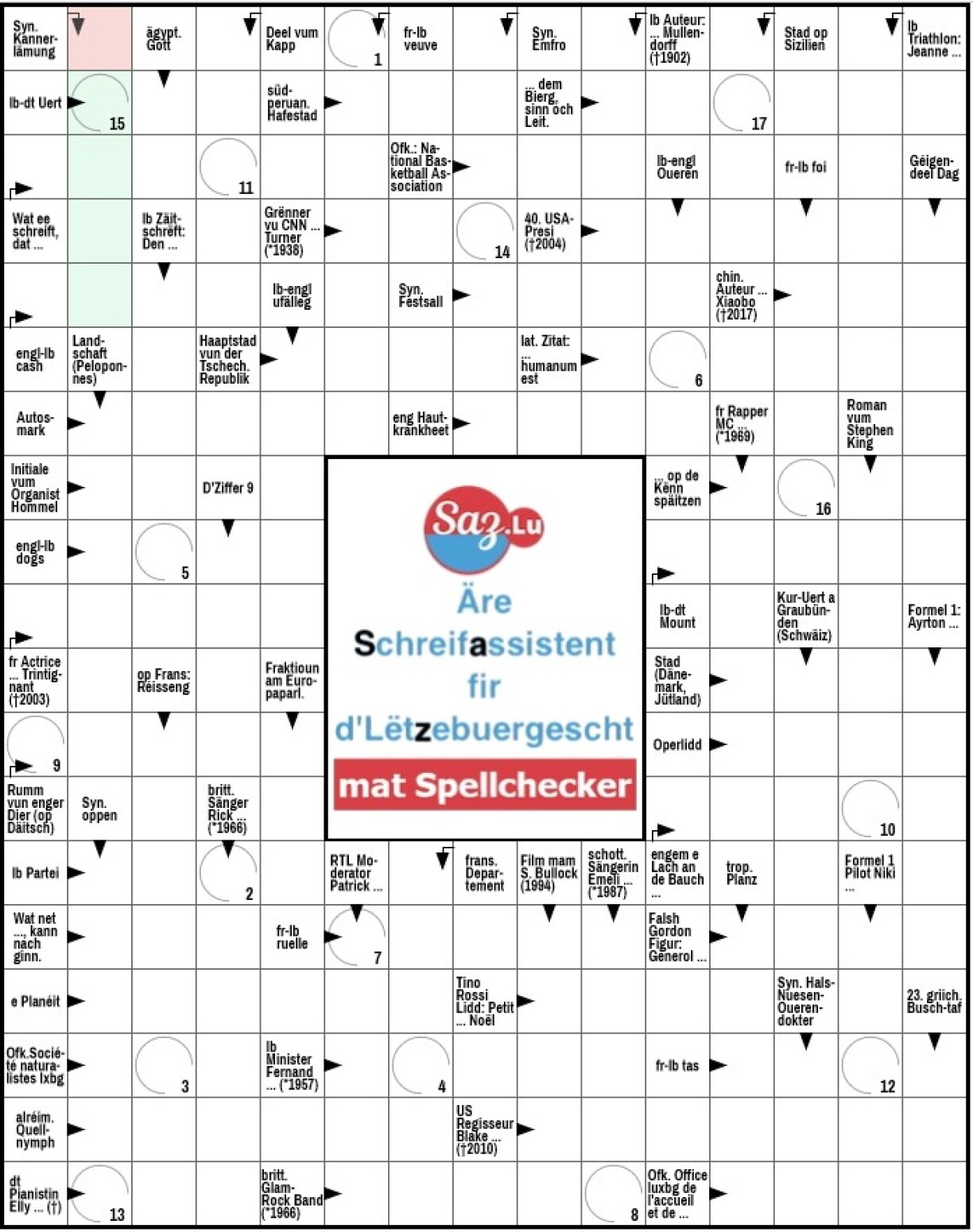 Nummer 407En neit Online-Kräizwuerträtsel ganz op Lëtzebuergesch