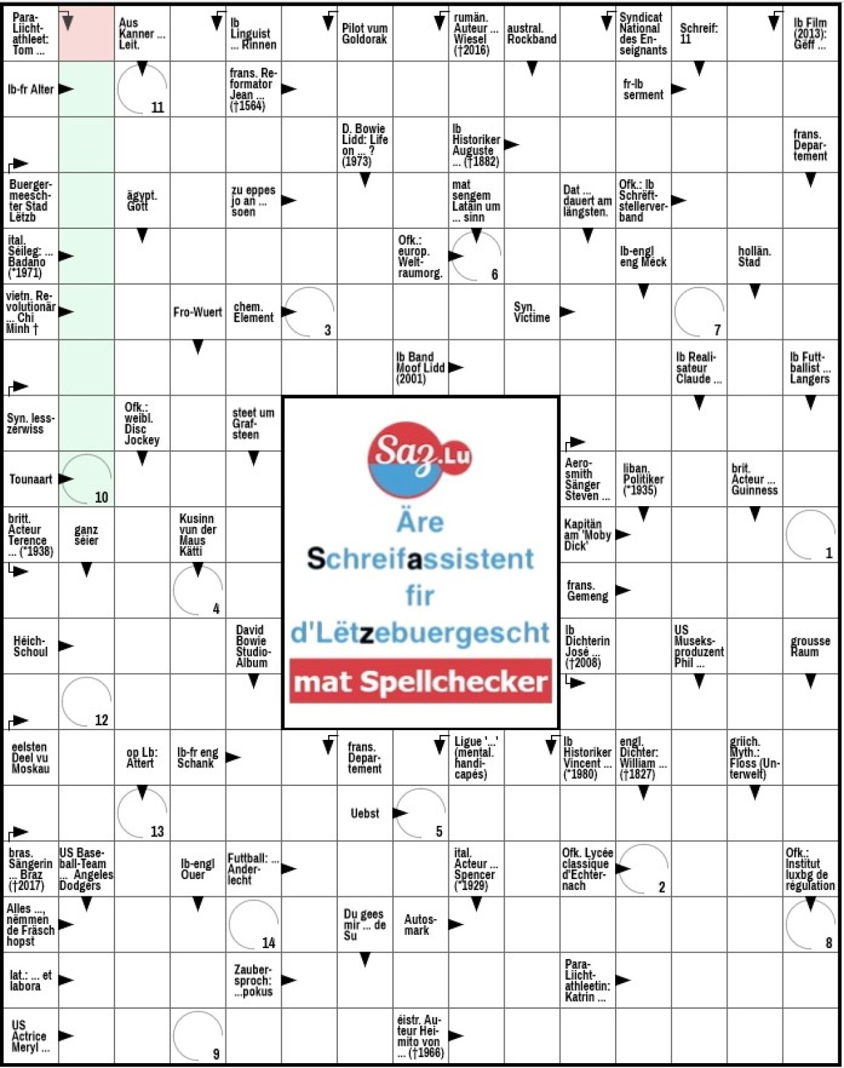 Nummer 408En neit Online-Kräizwuerträtsel ganz op Lëtzebuergesch
