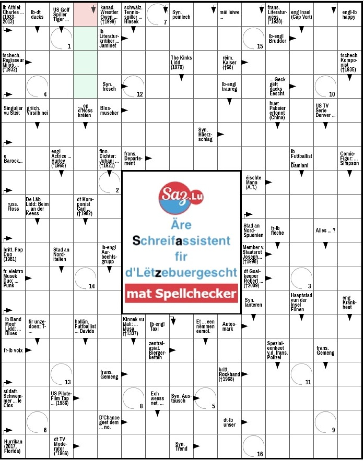 Nummer 409En neit Online-Kräizwuerträtsel ganz op Lëtzebuergesch