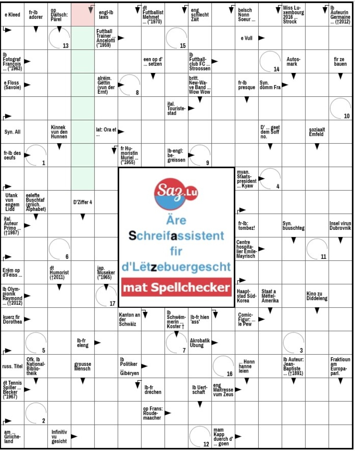 Nummer 411En neit Online-Kräizwuerträtsel ganz op Lëtzebuergesch
