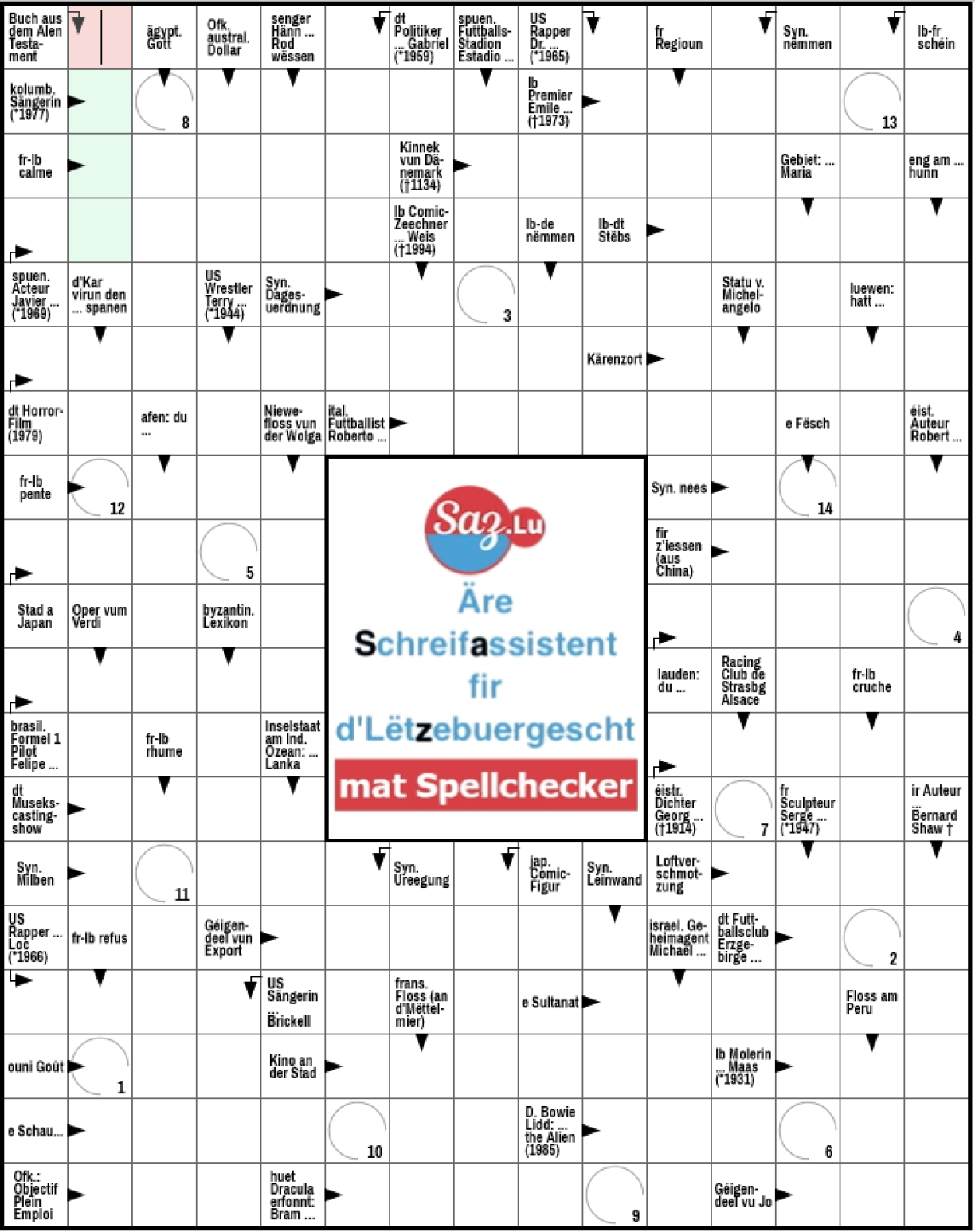 Nummer 424En neit Online-Kräizwuerträtsel ganz op Lëtzebuergesch