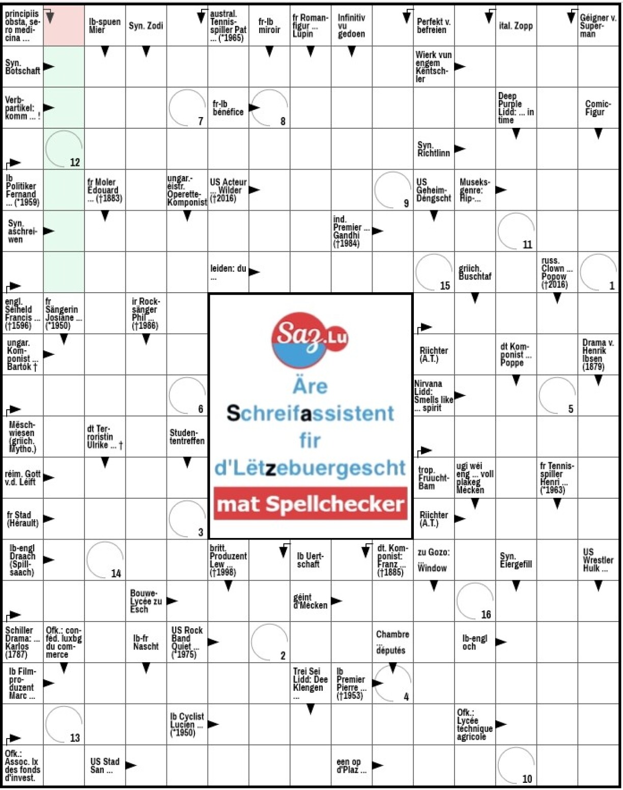 Nummer 427En neit Online-Kräizwuerträtsel ganz op Lëtzebuergesch
