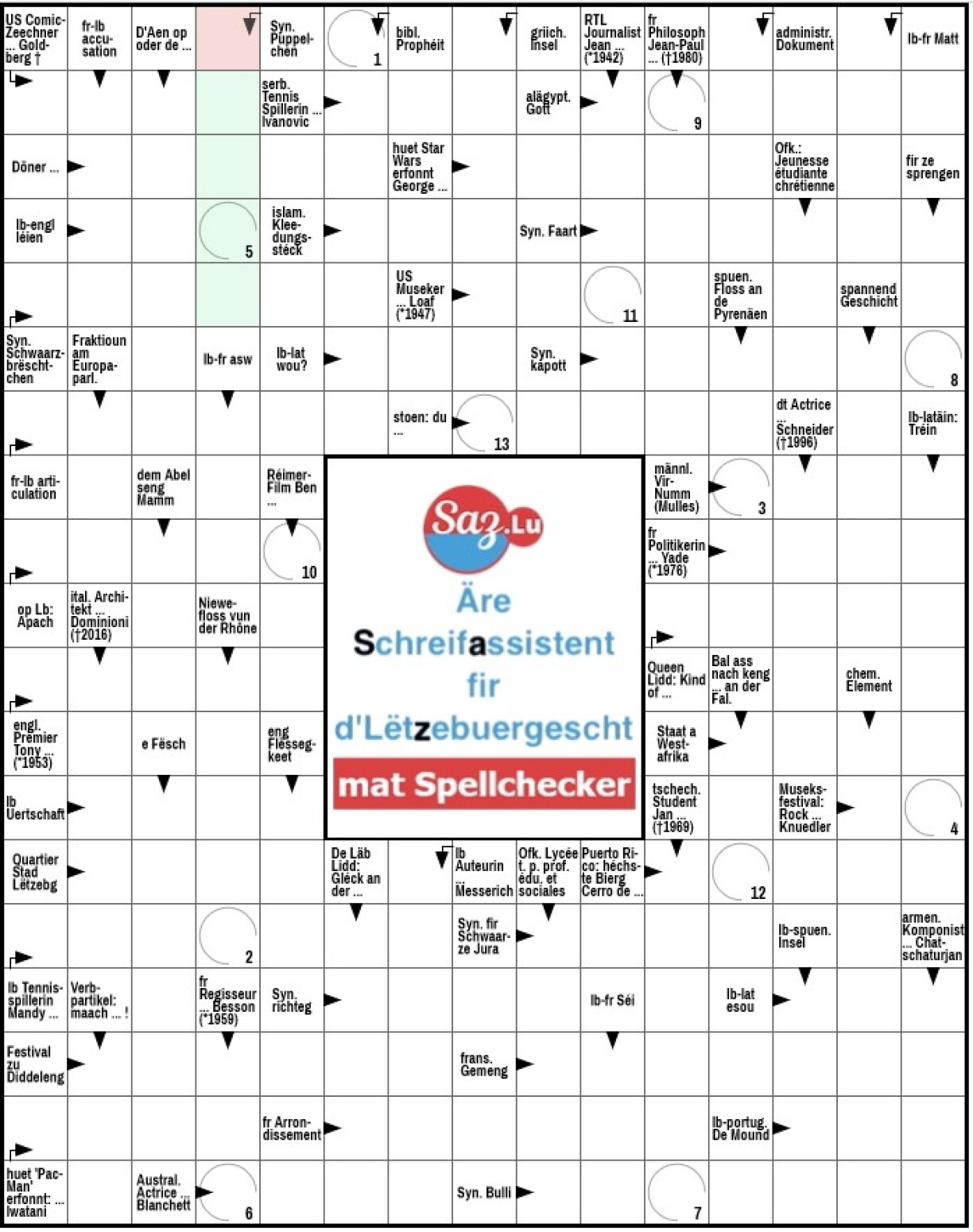 Nummer 429En neit Online-Kräizwuerträtsel ganz op Lëtzebuergesch