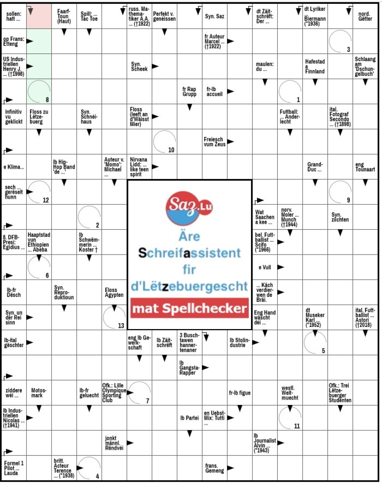 Nummer 439En neit Online-Kräizwuerträtsel ganz op Lëtzebuergesch