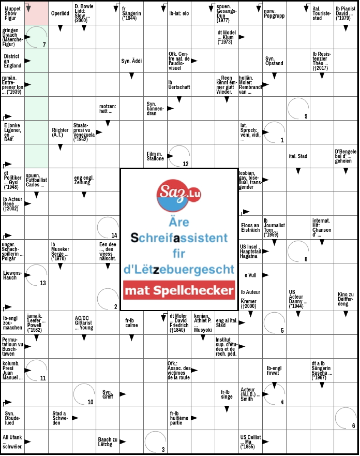 Nummer 446En neit Online-Kräizwuerträtsel ganz op Lëtzebuergesch