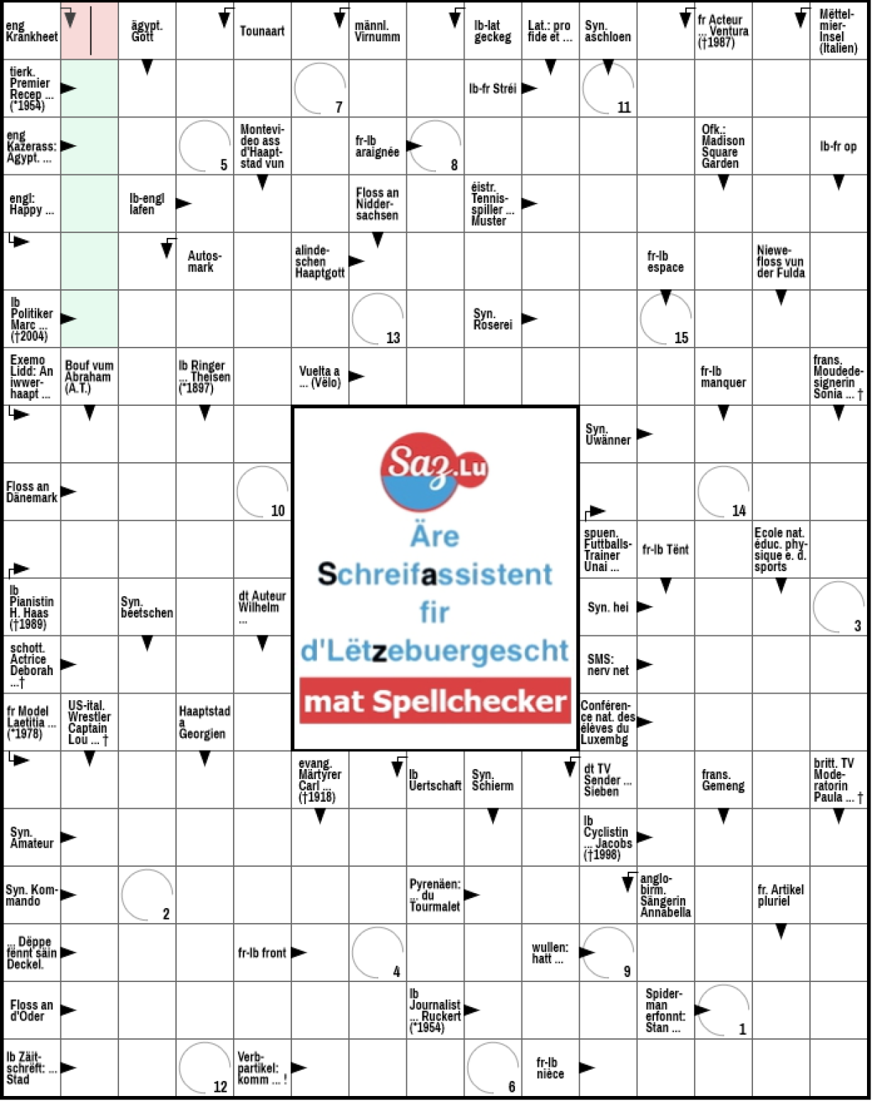Nummer 447En neit Online-Kräizwuerträtsel ganz op Lëtzebuergesch