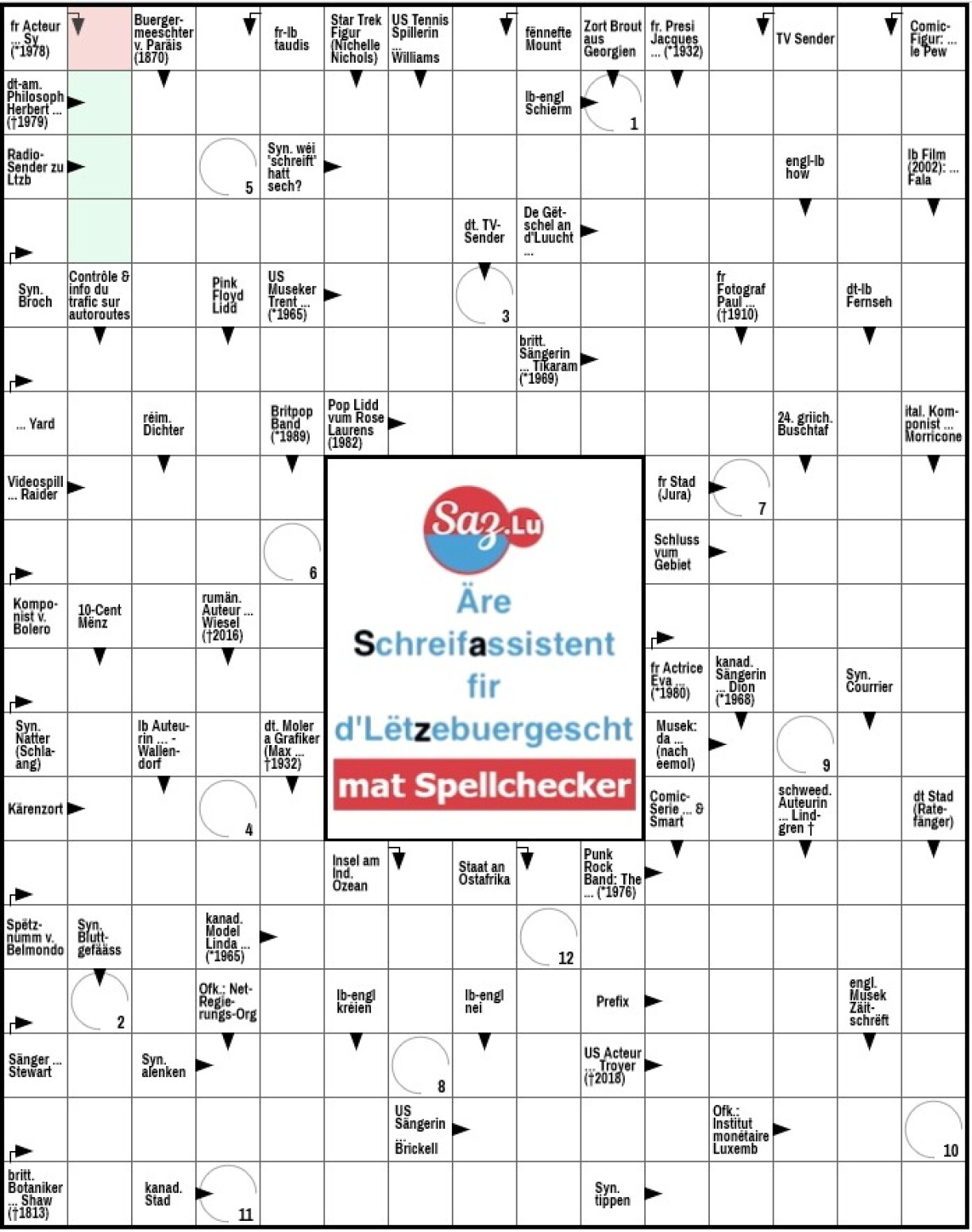Nummer 448En neit Online-Kräizwuerträtsel ganz op Lëtzebuergesch