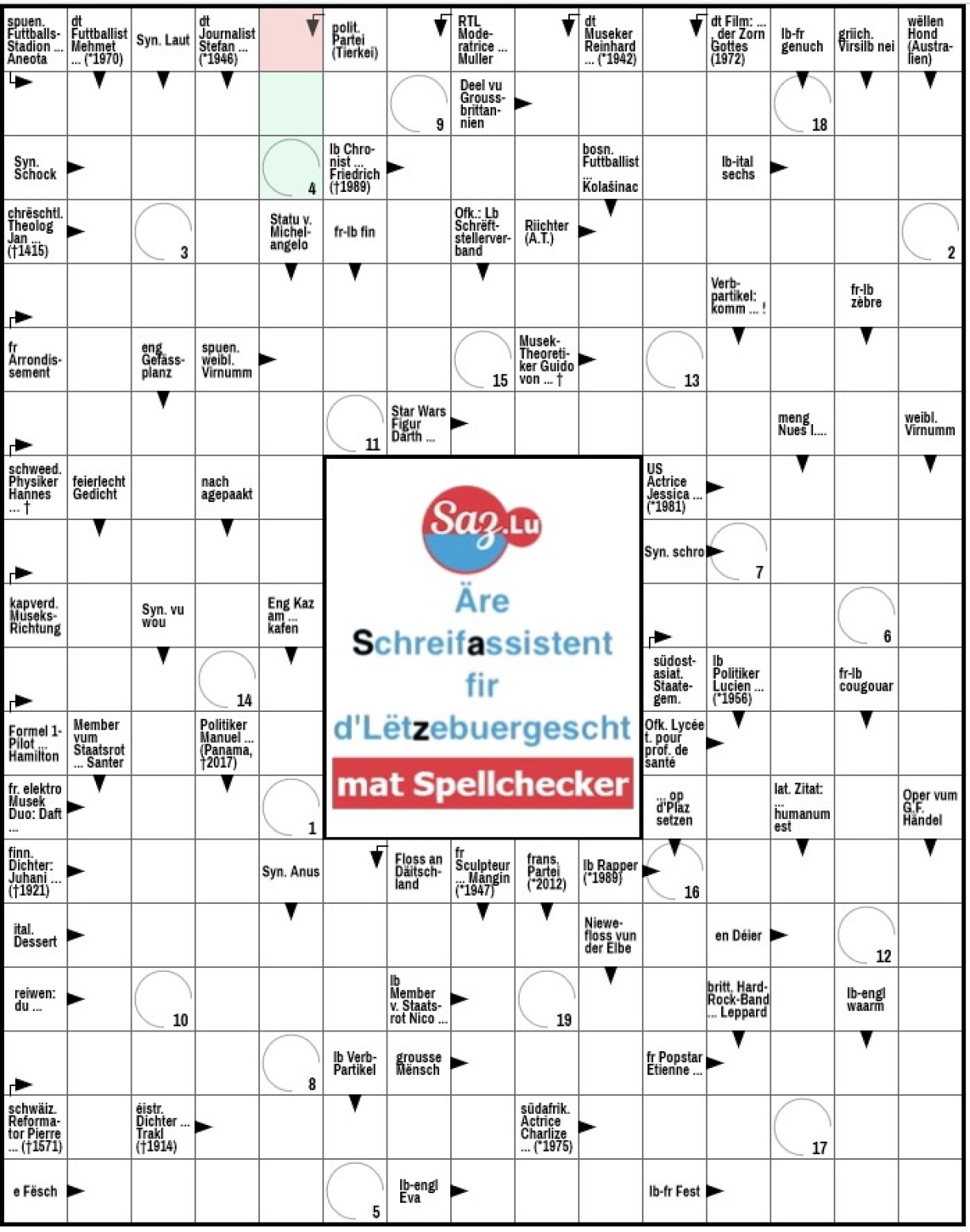 Nummer 453En neit Online-Kräizwuerträtsel ganz op Lëtzebuergesch