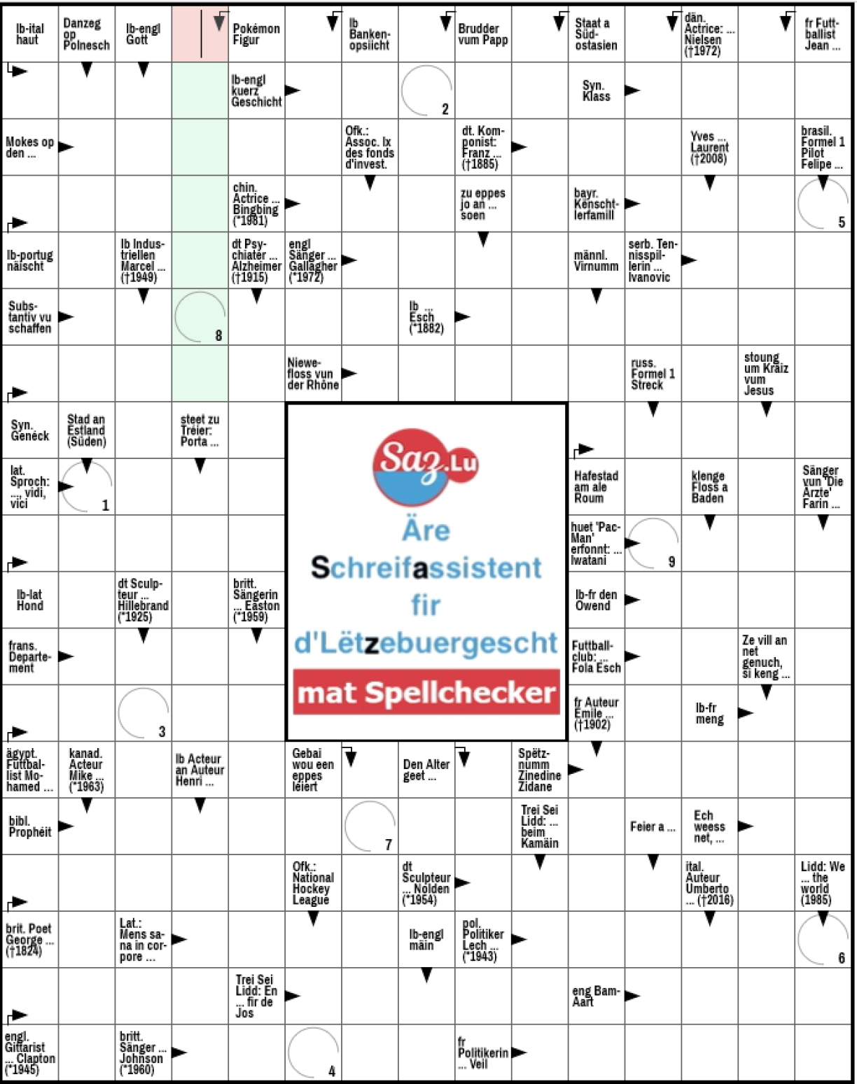 Nummer 457En neit Online-Kräizwuerträtsel ganz op Lëtzebuergesch