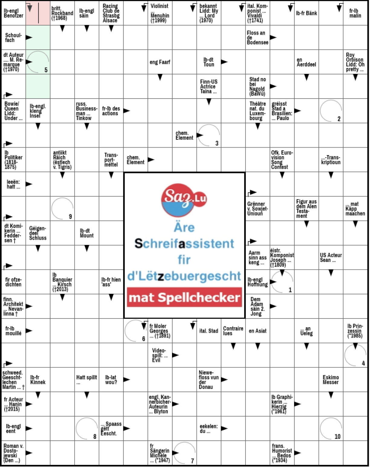 Nummer 458En neit Online-Kräizwuerträtsel ganz op Lëtzebuergesch