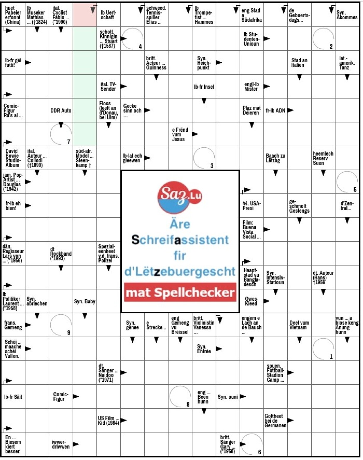 Nummer 462En neit Online-Kräizwuerträtsel ganz op Lëtzebuergesch