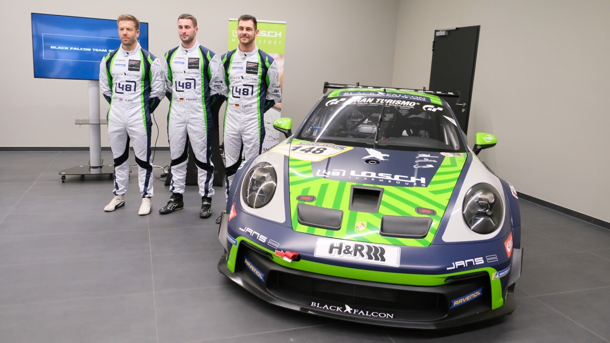E klengen Teaser gouf et schonn de 15. Mäerz, wéi Losch Lëtzebuerg wësse gedoen huet, dass een e Kontrakt mam Rennstall “Black Falcon” ënnerschriwwen huet. Am Hannergrond op der Foto war dann och e Porsche GT3 ze erkennen.