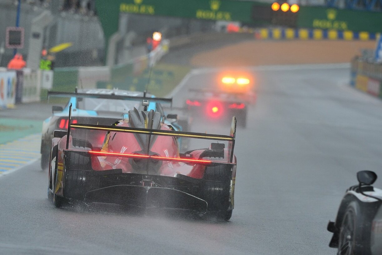 No knapp aacht Stonnen huet den Dries Vanthoor de WRT BMW #15 fir déi drëtt Kéier erausgehäit dëse Weekend, dat nodeems hien eng Touchette mam Ferrari #50 hat. Dee krut eng 10-Sekonne-Strof wéinst Onsportlechkeet. Nom Safety Car ass et mat Schmockes an d’Nuecht eragaangen. De Robert Kubica mam Ferrari #83 virum Makowiecki mam Porsche Penske #5 an dem Sébastien Buemi mam Toyota #8. Um Mëtternuecht huet et lues ugefaange mat reenen an et ass ëmmer méi ginn, soudatt vun 3.30 Auer un de Safety Car eraus komm ass. Kuerz virum Safety Car huet de Valentino Rossi säi BMW #46 an d’Sécherheetspneue gesteiert. Domat war de BMW GT3 och net méi dobäi.