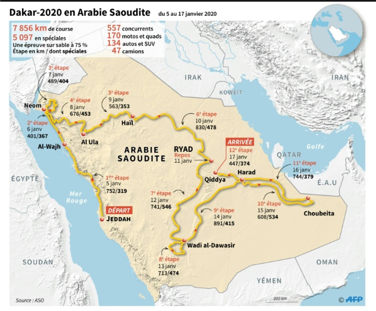 7'900km gëllt et dëst Joer op 12 Etappen ze iwwerstoen.