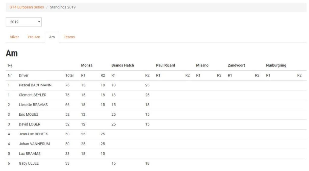 Am Generalklassement (AM) stinn de Pascal Bachmann an de Clement Seyler elo op Plaz 1 mat 76 Punkten, virum Liesette Braams mat 66 Punkten.