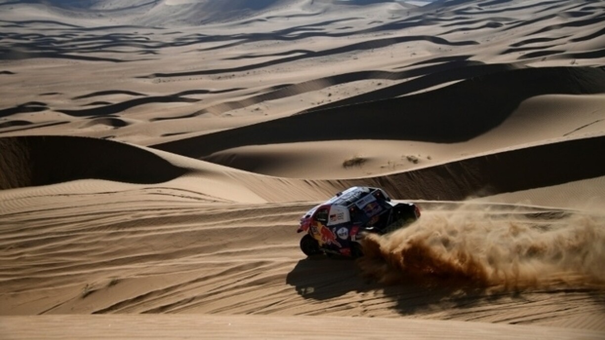 Op der drëtter Plaz am General läit den zweefache Rallye-Weltmeeschter Carlos Sainz(Mini) mat iwwert enger Stonn Retard.
