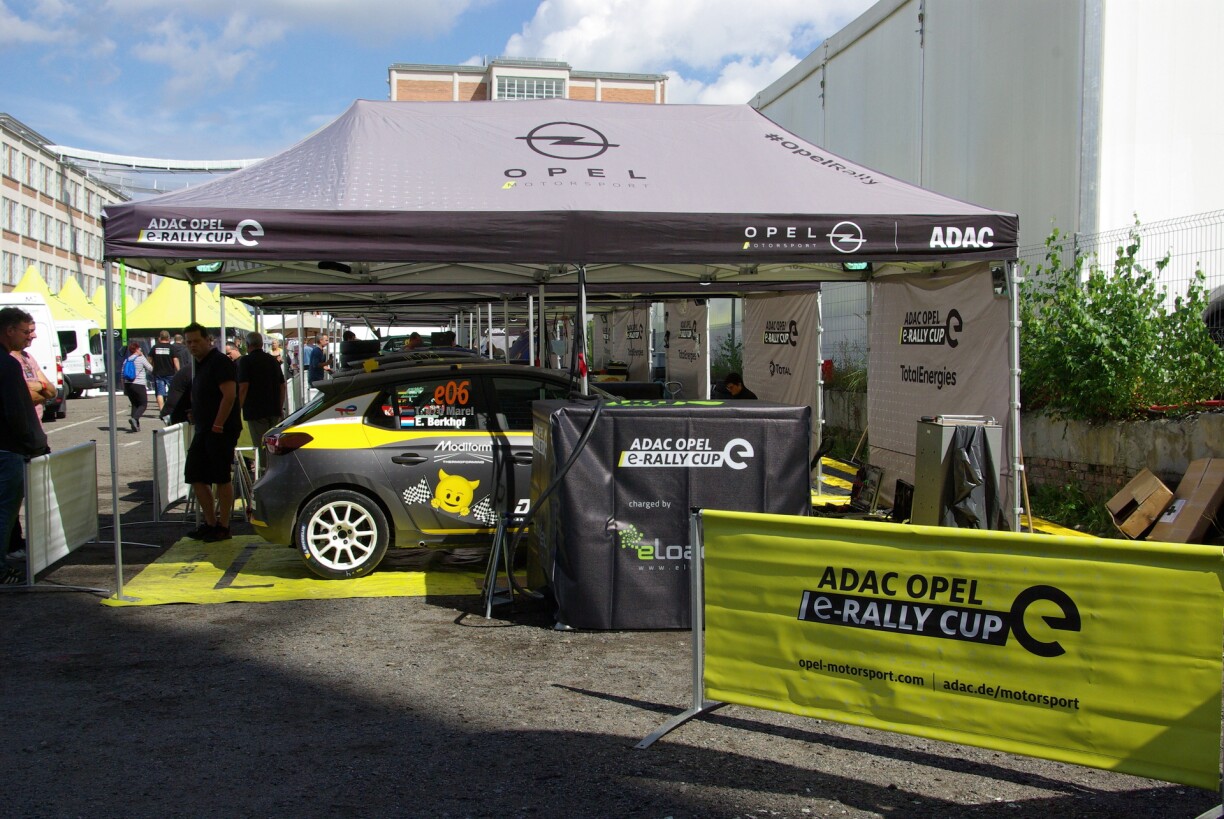 Opel Motorsport huet dofir eng speziell Infrastruktur zesummegestallt, déi mat op déi divers Rallye fiert, sou dass all Rallye-Auto säin eegene Chargeur huet.