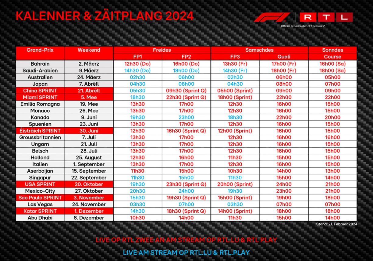 De Grousse Präis kënnt Dir e Sonndeg wéi gewinnt op RTL ZWEE, RTL.lu an um RTL Play suivéieren. Den Depart vun der Course ass fir 15 Auer festgeluecht.
