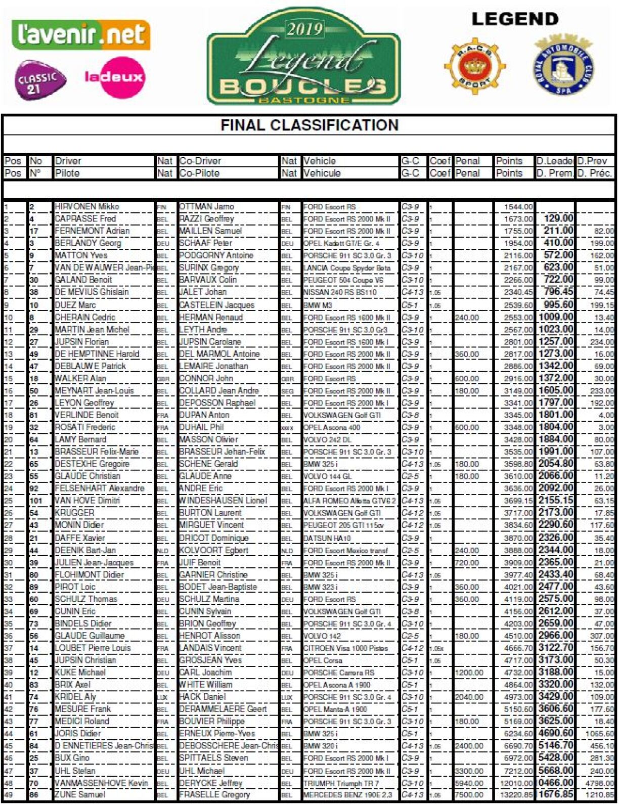 Gewonnen huet de fréieren WRC-Pilot Mikko Hirvonen aus Finnland, virum Fred Caprasse an dem Adrien Fernément, allen dräi op Ford Escort.