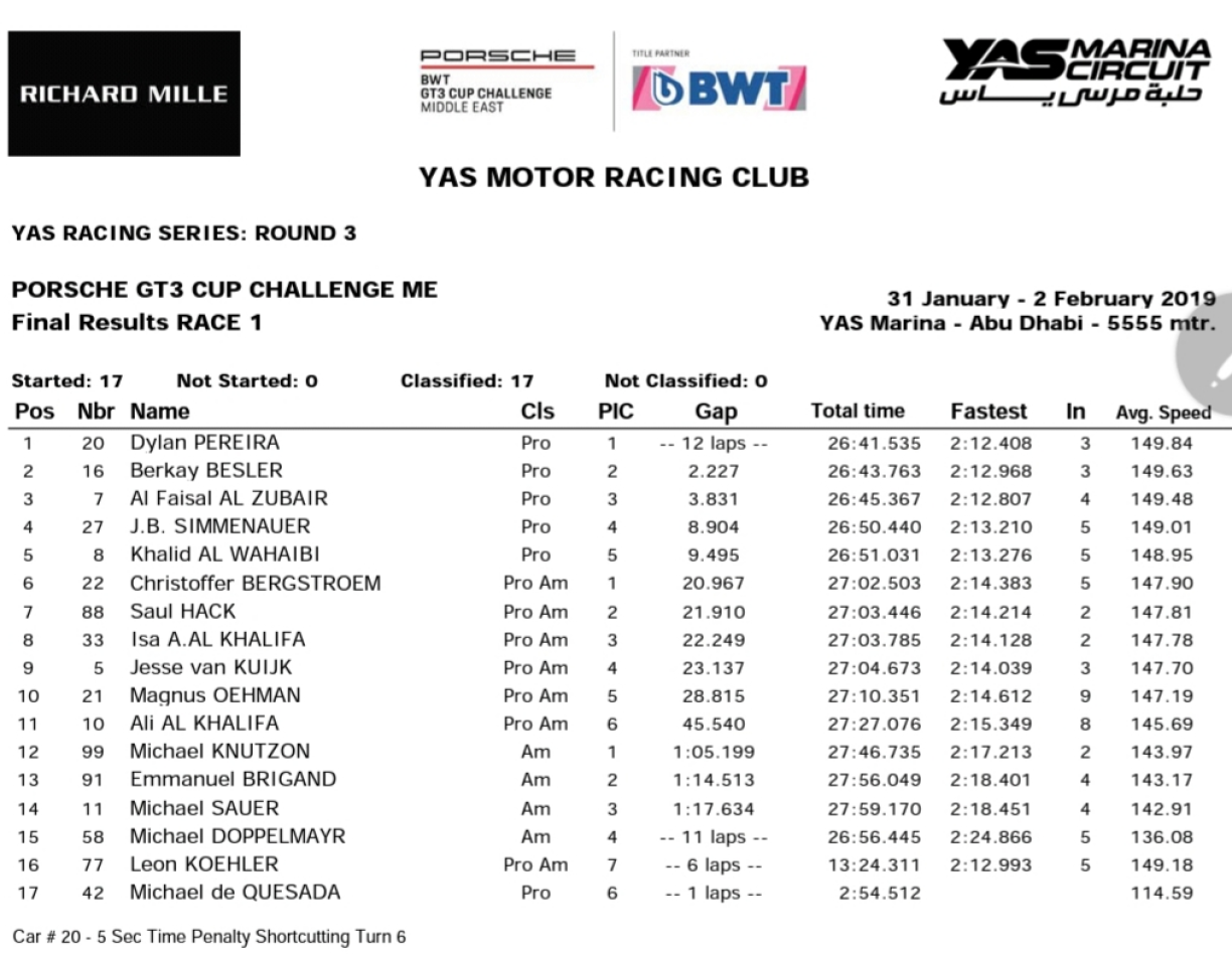 E Freideg schonn hat de Lëtzebuerger Dylan Pereira sech d’Victoire beim Porsche Cup Middle East - GT3 Cup Challenge geséchert.