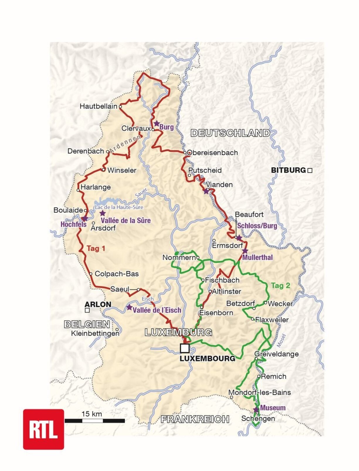 Den 2. Oktober gëtt ënnert anerem um Circuit vun der Goodyear zu Colmer-Bierg gefuer, an duerno geet et weider a Richtung Musel, erof op Wecker, Greiweldeng, Réimech, Schengen an dann nees zeréck an d’Stad mat enger Arrivée virum Palais.