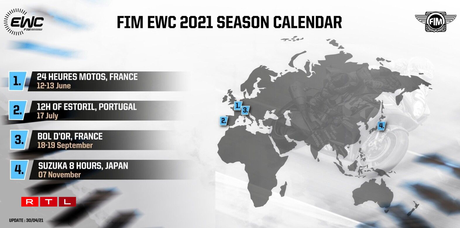 Den Accord fir d’Distributioun, deen tëscht RTL Play an Eurosport Events, dem Promoter vun der FIM Endurance World Championship ënnerschriwwe gouf, leeft bis 2027.