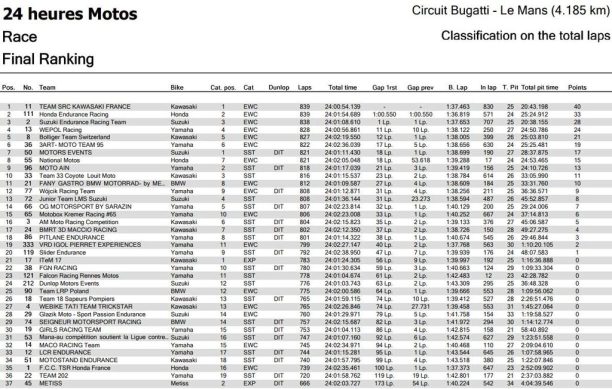 Den erfuerenen Italiener Kévin Manfredi war de Start vun der 24h-Course gefuer a konnt sech schonn direkt an der 1. Ronn bis op Plaz 5 no vir schaffen. No e puer technesche Problemer, grad wéi enger Chute ass een zwar nees e bëssen zeréckgefall, ma um Enn konnt ee sech iwwert eng gutt 3. Plaz an der SuperStock-Kategorie freeën, an eng Top10 am General.