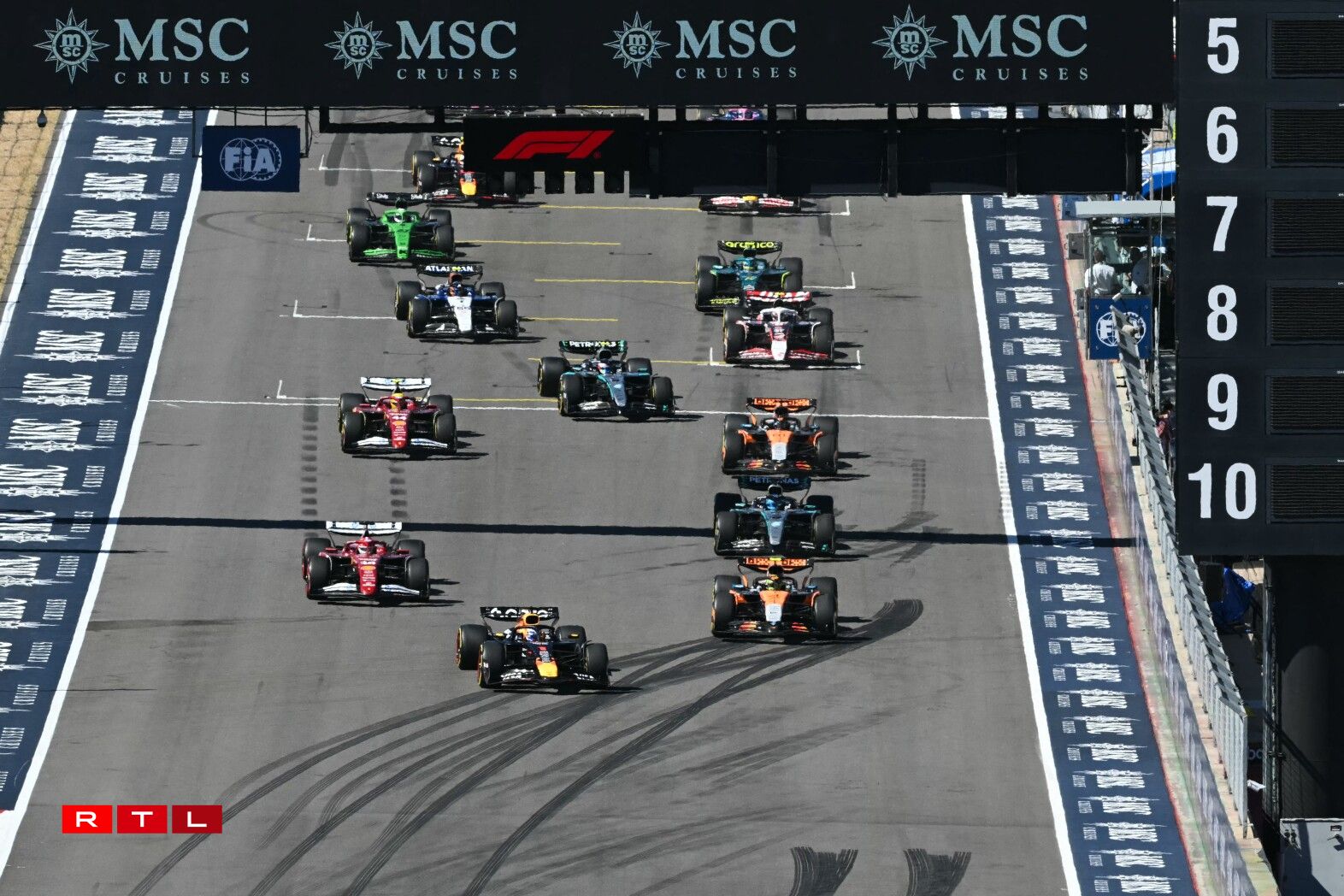 De Verstappen hat e ganz gudde Start erwëscht a konnt sech direkt ofsetzen. Hannendru war et méi spannend. De Leclerc konnt den Norris iwwerhuelen, op de Plaze 4 a 5 waren den Hamilton an de Piastri. De grousse Verléierer vun den éischte Ronne war de Russell, deen op déi 6. Plaz zréckgefall war.