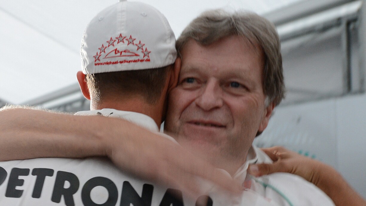 Den haut 68 Joer alen Haug, dee vun 1990 bis 2012 un der Spëtzt vu Mercedes, wat de Motorsport ugeet, war, kennt de Lewis Hamilton natierlech aus dem “FF": “Seit er 14 Joer alt ist, wurde er vun uns gefördert. Aufgeben gibt es bei ihm nicht.”