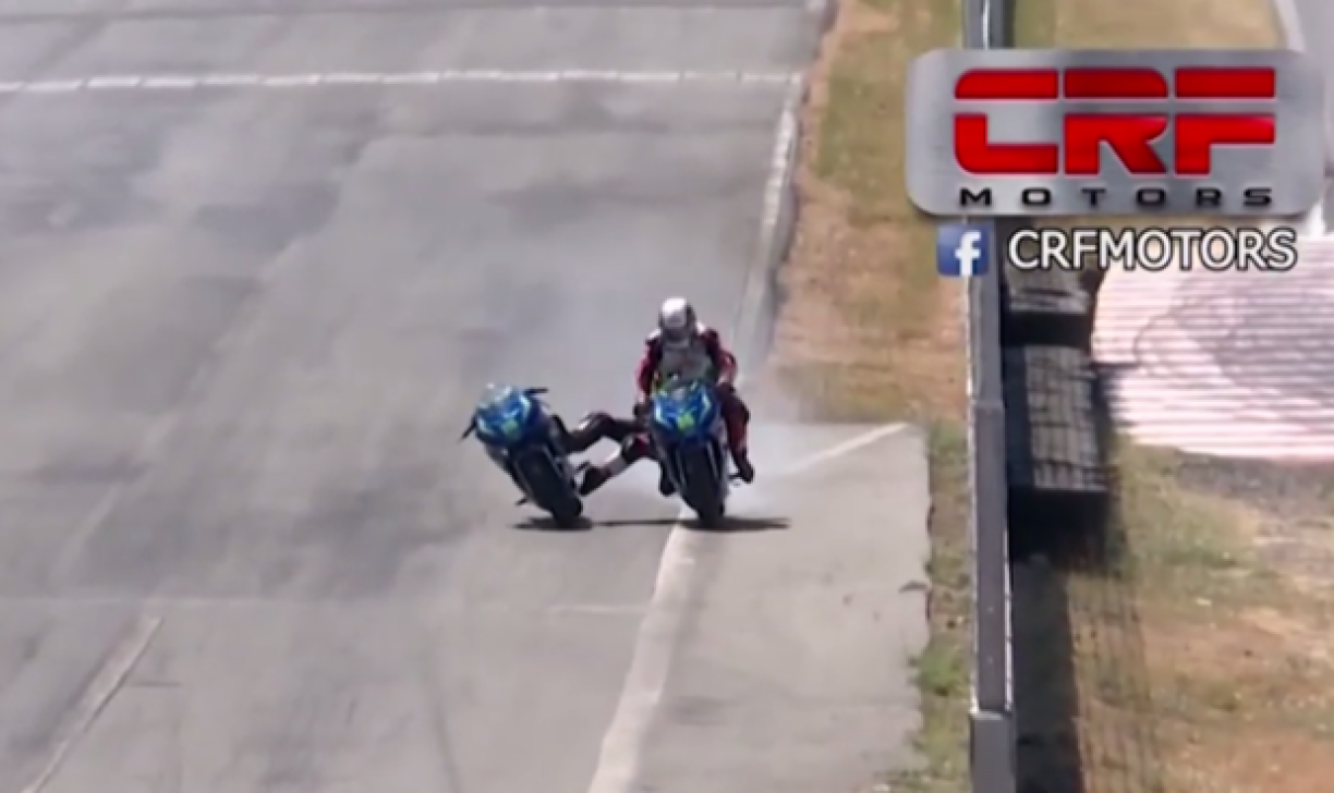 De Jorge Martinez an de Marion Calvo si bei enger Course um Autodromo La Guacima vum Costa Ricanesche Motorradschampionnat uneneegeroden. De Martinez huet sech dunn un dem Calvo säi Motorrad gehaangen. Wéi de Calvo du stoebliwwen ass, huet de Martinez de Calvo geschloen. Dat war viru knapp engem Mount, elo si béid Sportler fir zwee Joer gespaart ginn.