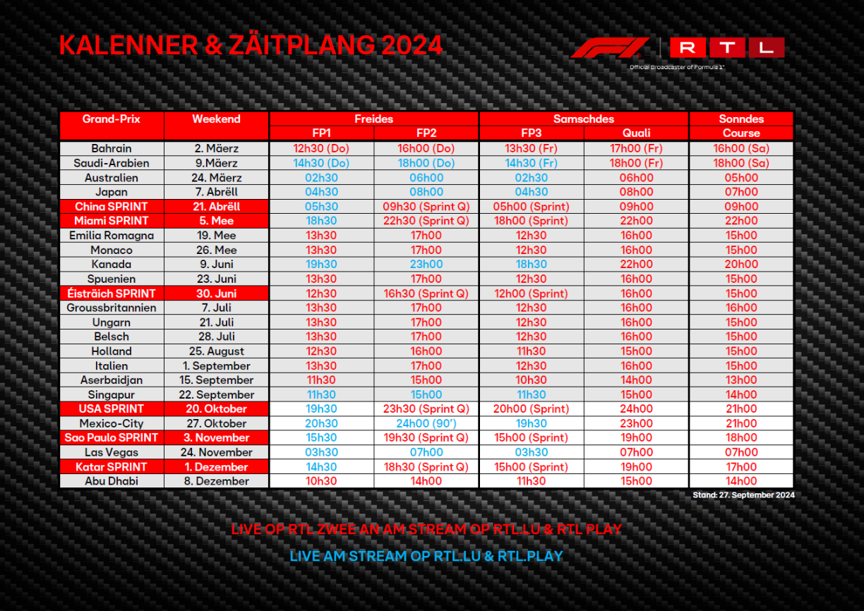 No 19 Tier um Circuit of the Americas zu Austin krut de Max Verstappen d’Medail vum Sprint-Gewënner ëmgehaangen. Den amtéierende Weltmeeschter war nach méi frou, well de Lando Norris* seng sécher gegleeft zweet Plaz an der leschter Ronn ewechgeheit huet an hannert dem Carlos Sainz just Drëtte gouf.