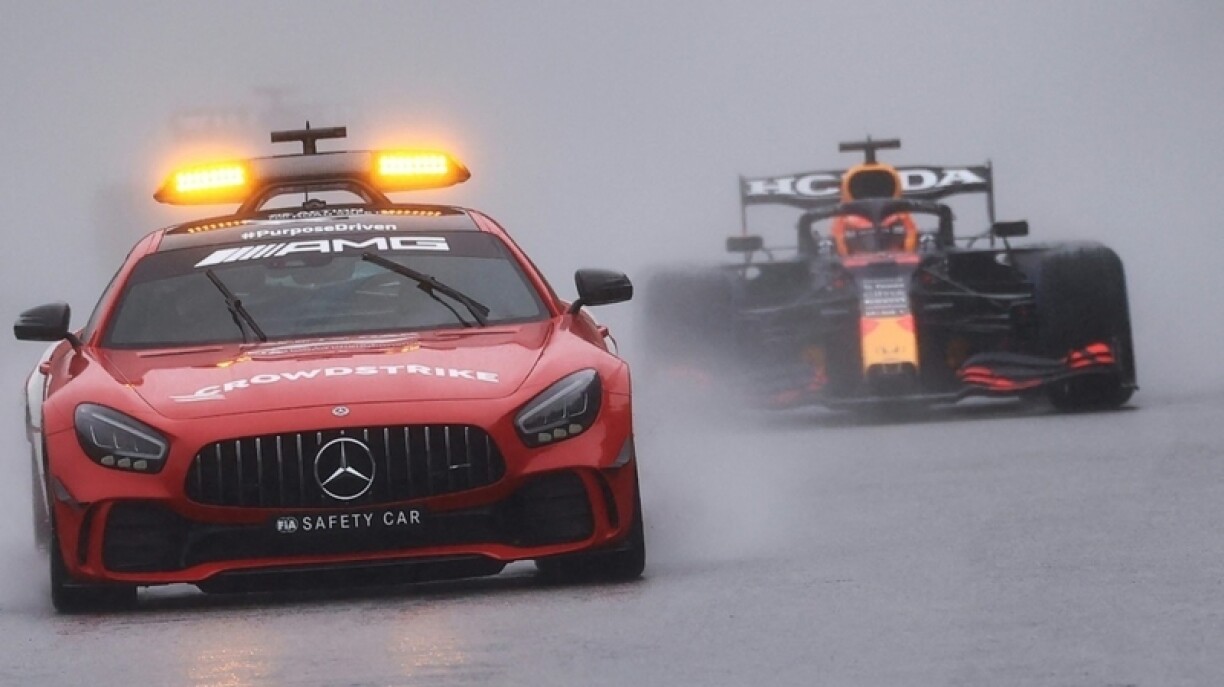 No insgesamt 3 Stonnen a 45 Minutten gouf dann decidéiert d’Course ofzebriechen an domadder gewënnt de Max Verstappen d’Course no insgesamt just 3 Ronnen hannert dem Safety Car virum George Russell an dem Lewis Hamilton.
