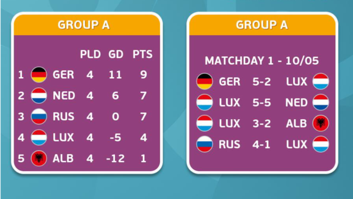 Am Match géint Däitschland huet Lëtzebuerg 2-5 verluer, géint Holland trenne sech d’Rout Léiwe 5-5, géint Albanien gouf et eng 3-2-Victoire a géint Russland zitt Lëtzebuerg mat 1-4 de Kierzeren.