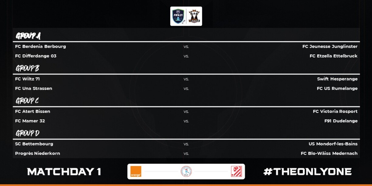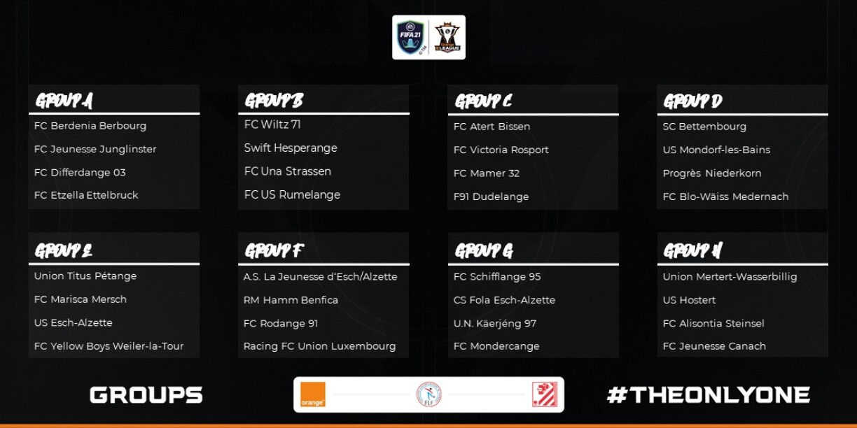 Dësen Online-Championnat am FIFA 21 fänkt dann elo am Mäerz un, déi grouss Finall ass fir de 15. a 16. Mee geplangt. D’Clibb déi bei dësem Championnat matmaachen, sinn déi aus deenen zwou ieweschten Divisiounen, also der BGL-Ligue an der Éierepromotioun.