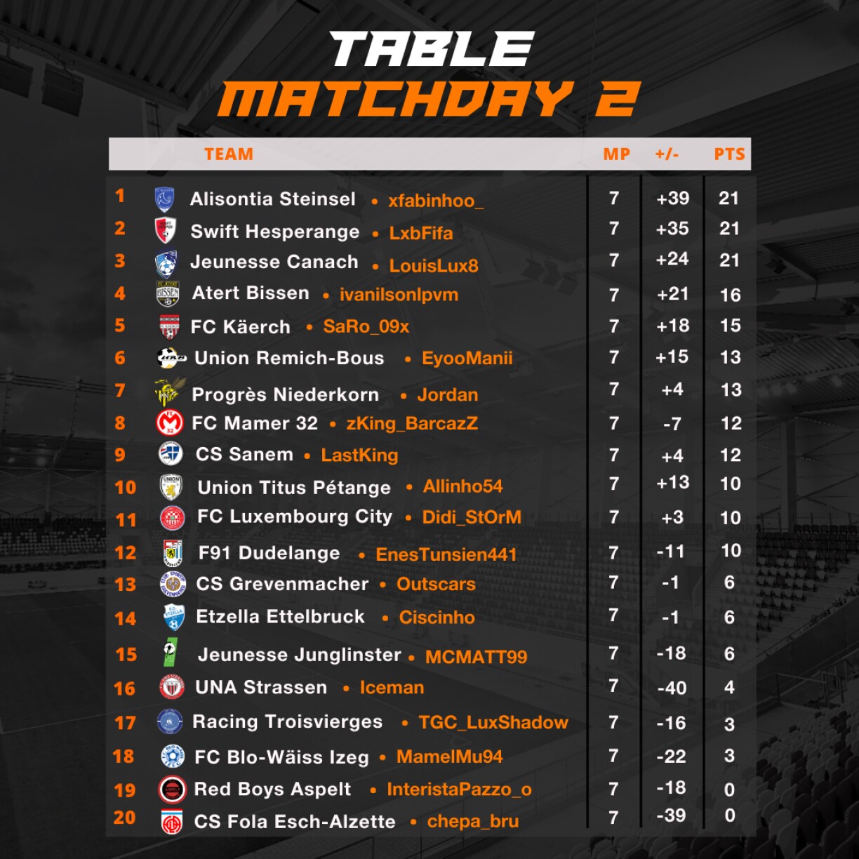 Nächste Spilldag ass e Mëttwoch an 2 Wochen.