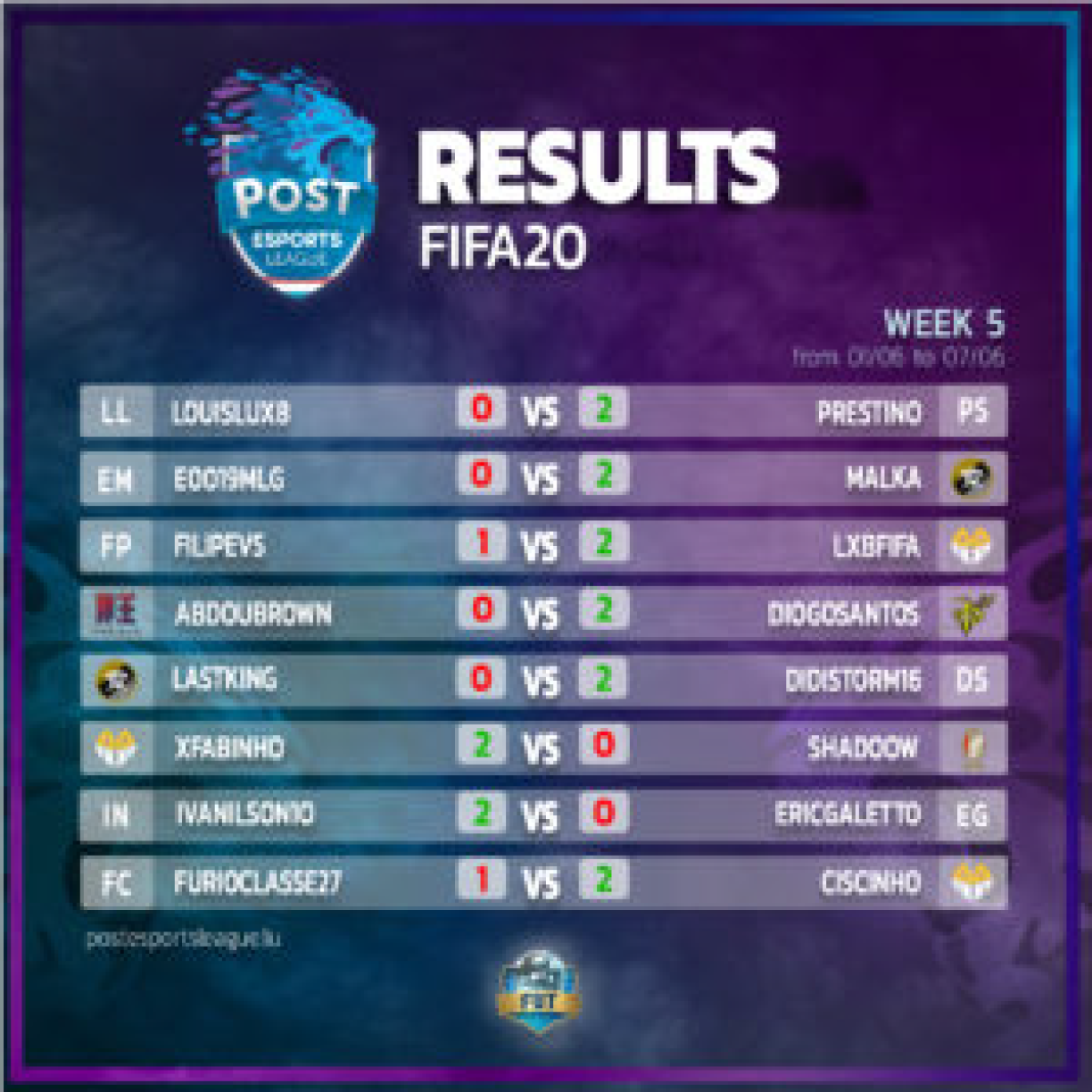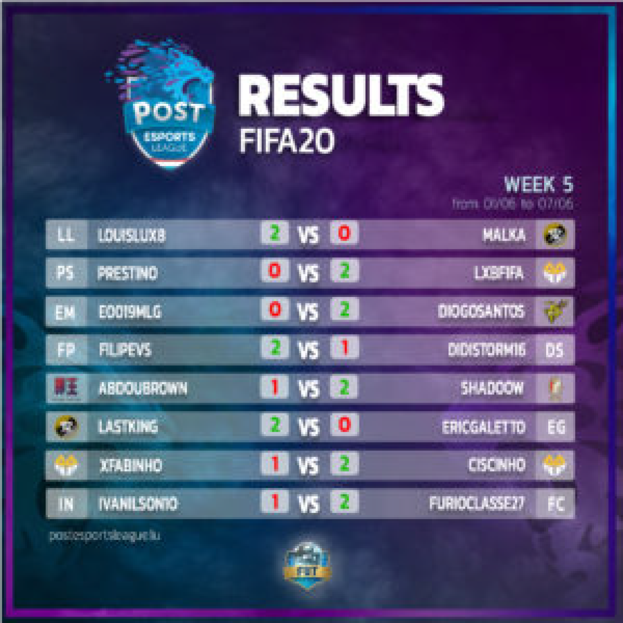 An dëser Woch sinn hei praktesch alleguerten déi iewescht Ekippen openee getraff, sou dass et hei virun allem ëm déi éischt Plaze gaangen ass. Den xFabinho vun Outplay gewënnt 2:0 géint de Shadoow vum Standard Léck ma verléiert awer géint de Ciscinho vun Outplay, dat mat 1:2. De Ciscinho wënnt dann och 2:1 géint de Fuoriclasse. De Fuoriclasse kann sech awer mat enger 2:1 Victoire géint den Ivanilson nees rappen. De xFabinho, de Shadoow an de Fuoriclasse kënnen hir Woch op alle Fall mat 24 Punkten um Kont op en Enn bréngen. Op der éischter Plaz am Klassement steet awer den LxBFifa, a léisst den XFabinho hannert sech.