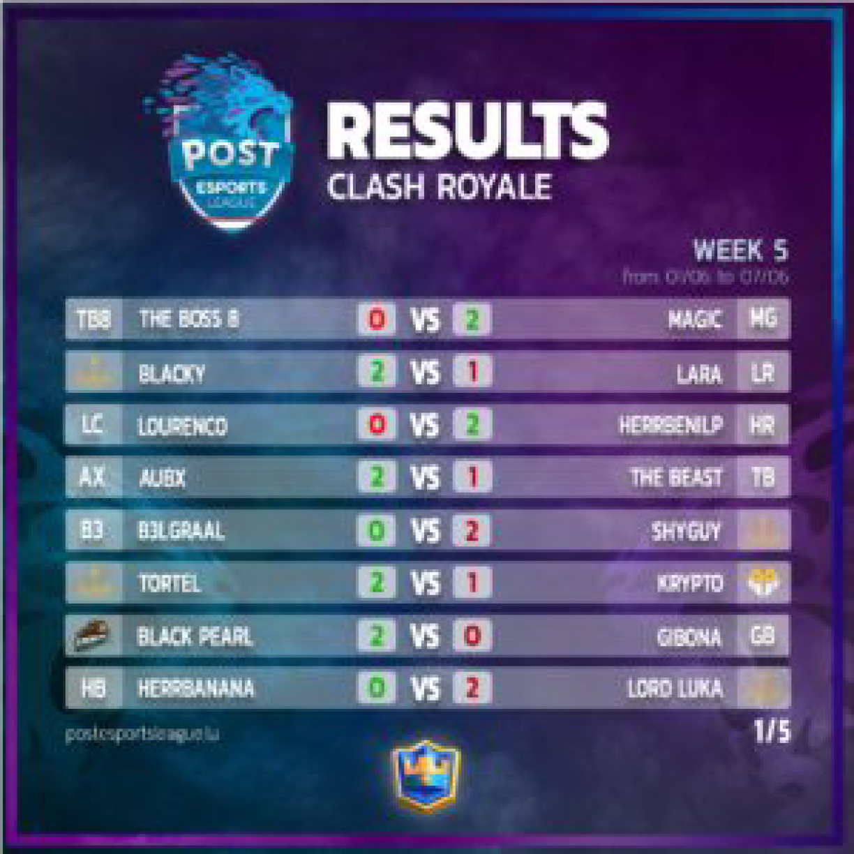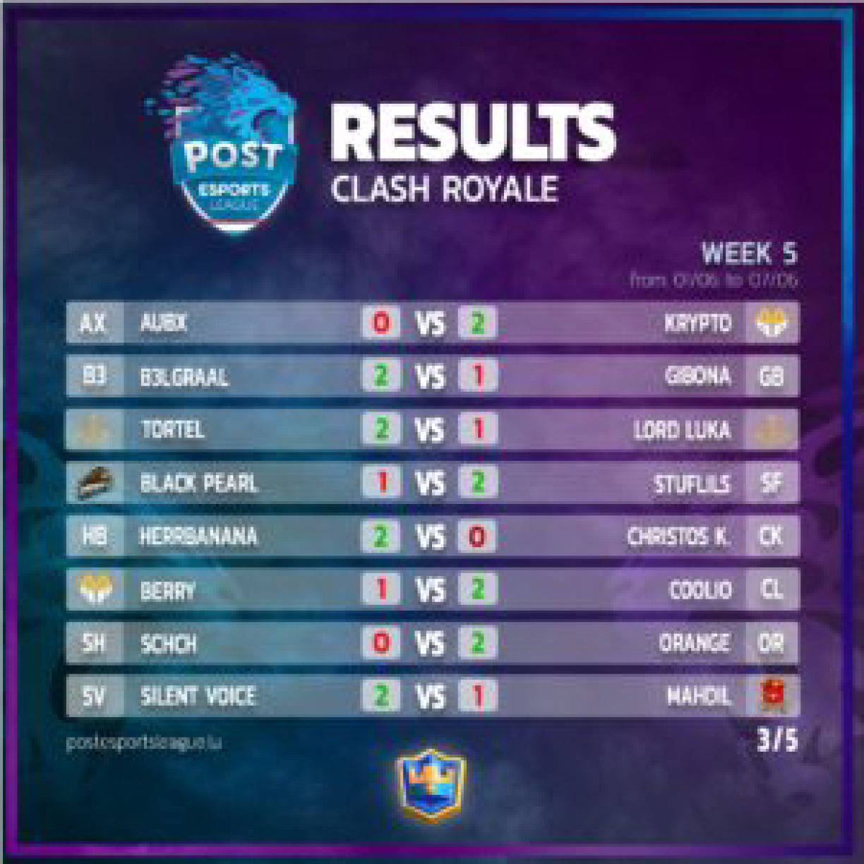 Souwuel den Tortel wéi och de Shy Guy konnte mat 3 Victoiren a kenger Defaite sech extrem gutt an dëser Woch duerchsetzen. De Shy Guy wënnt géint de Magic, deen am Moment 2. am Klassement ass, den Tortel wënnt géint de Krypto a brécht deem seng Serie u Victoiren. Och de Lord Luka an de Blacks vun der Royal Family verléieren all Kéiers just ee Match, sou dass d’Ekipp am Ganzen 10 Victoiren op sengem Kont huet. De BlackPearl vun Enemity Esport steet aktuell dann op der 1. Plaz am Klassement. Ma och hei dierft de Kampf ëm Plazen an de Playoffs spannend bleiwen. Fir Gibona, Mahdil vun DuXedom, Aubx, Stuflils, HerrBeniLP, TheBeast, Lourenco a souguer HerrBanana a Lara sinn nach Plazen dran.