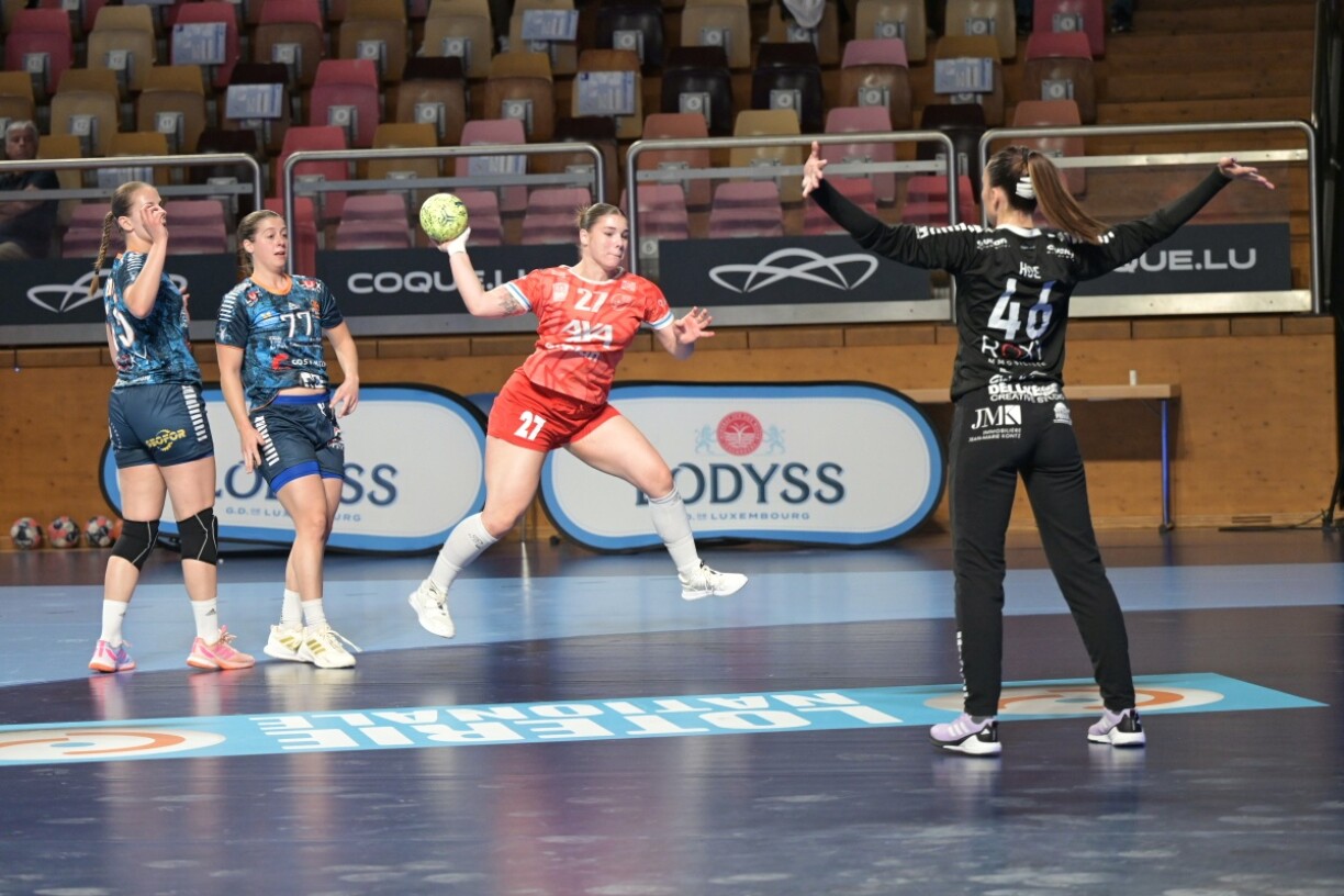 Wat och ëmmer de Michel Scheuren sengen Dammen an der Kabinn mat op de Wee ginn hat, si hunn nom Säitewiessel e ganz anert Gesiicht gewisen. D'Charlène Servant am Gol huet hire Matspillerinnen den néidegen Impuls fir d'Ophueljuegd ginn. D'Franséisin huet am zweeten Duerchgang just 7 Goler kasséiert an dobäi tëscht der 41. an der 48. Minutt d'Këscht propper gehalen. Sou konnt d'Red Boys an der 39. Minutt fir d'éischt zum Ausgläich kommen (22:22) an huet duerno Diddeleng iwwerrannt. Déifferdeng konnt déi zweet Hallschent mat 21:7 fir sech entscheeden.