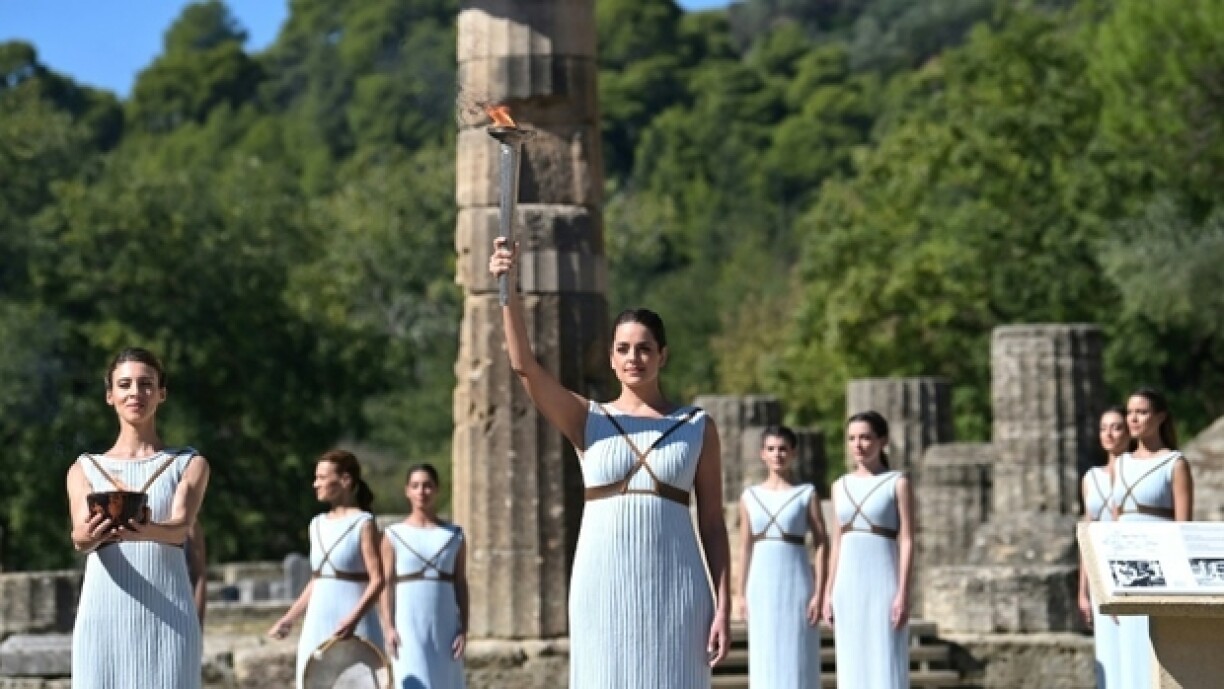 D’Flam gëtt an enger traditioneller Zeremonie zu Athen ugefaangen a kënnt da per Schëff den 8. Mee zu Marseille un. Vun der Hafestad aus geet d’Flam da queesch duerch Frankräich a kënnt fir d’Ouverture de 26. Juli zu Paräis un.