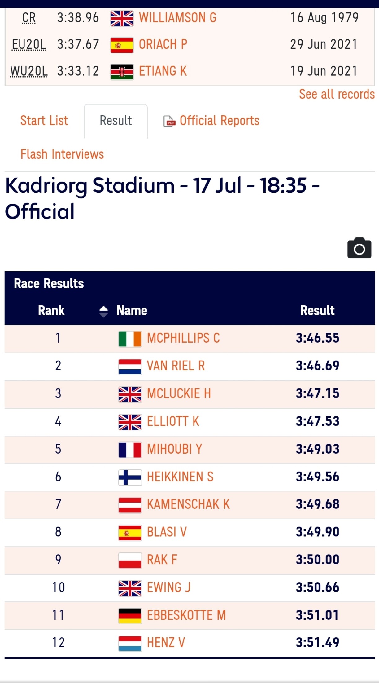 D’Course gouf gewonne vum Ir McPhilips. Hien ass eng Zäit vun 3'46"55 gelaf.