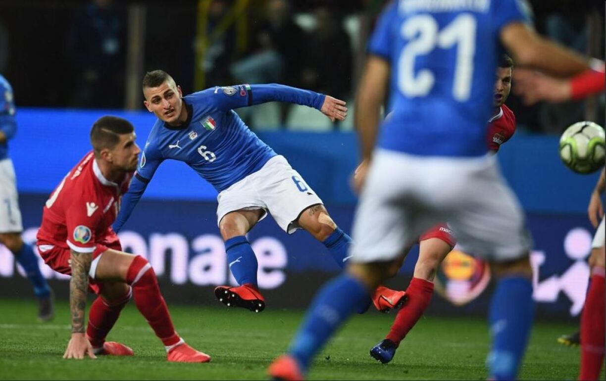 Italien huet et doheem mat Liechtenstein ze di kritt an hei war et kloer, wien d’Favoritte-Roll hat. Mat engem klore 6:0 konnt sech d’Heemekipp duerchsetzen, dat no Goler vum Sensi (17'), dem Verratti (32'), dem Quagliarella, deen zwee Mol (35' a 45+3') en Eelefmeter verwandelt huet, dem Kean (70') an dem Pavoletti (77').