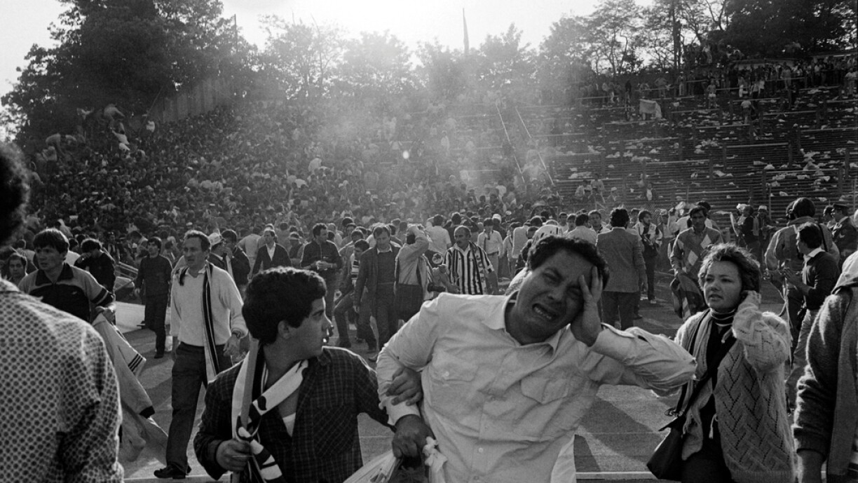Eigentlech weess keen esou richteg, wéi alles ugaangen ass. Déi eng soen, d’Italiener haten ugefaange mat provozéieren, anerer behaapten, et wier den Englänner hir Schold gewiescht. D’Stëmmung war jiddefalls schonn de ganzen Dag opgehëtzt, a ronn eng Stonn, éiert de Match ufänke sollt, hunn op béide Säite Fans mat Steng a Knupperte geheit. D’Steng goufe jeeweils aus dem Bëton vum baufällege Stadion erausgebrach. Géint 19.45 Auer waren dunn aus dem Block X e puer honnert Fans vu Liverpool an de Block Z gestiermt. D’Leit, déi sech do opgehalen haten, wollte flüchten, mee de Wee op den Terrain gouf hinne vun der Police blockéiert, an duerch déi eenzeg Sortie vum Block goufe se vun den Offizielle net duerchgelooss. Et koum zur Panik - vill vun de Leit goufe géint eng Mauer gedréckt oder néier getrampelt. D’Police war net amstand Verstäerkung ze ruffen, well d’Batterië vun hire Funkgeräter platt waren, oder net kompatibel mat den Apparater vun der Gendarmerie. Ausserdeem goufe si vun italieenesche Fans aus anere Bléck attackéiert, déi hire Compatrioten zur Hëllef komme wollten.