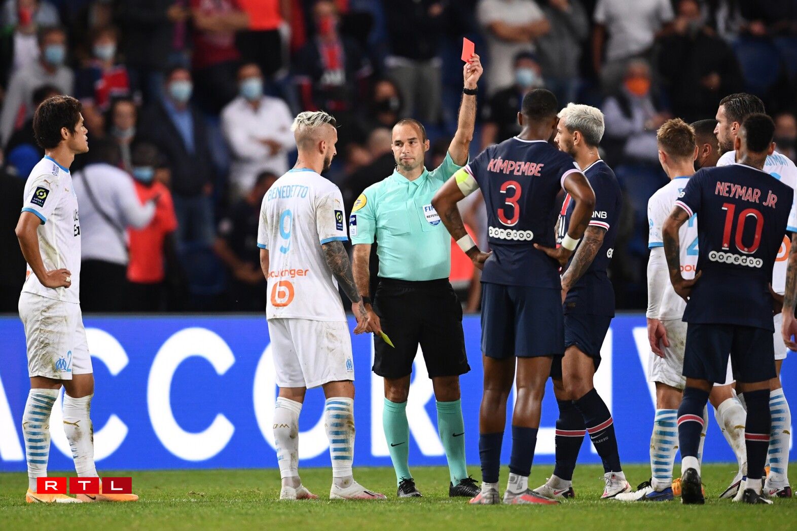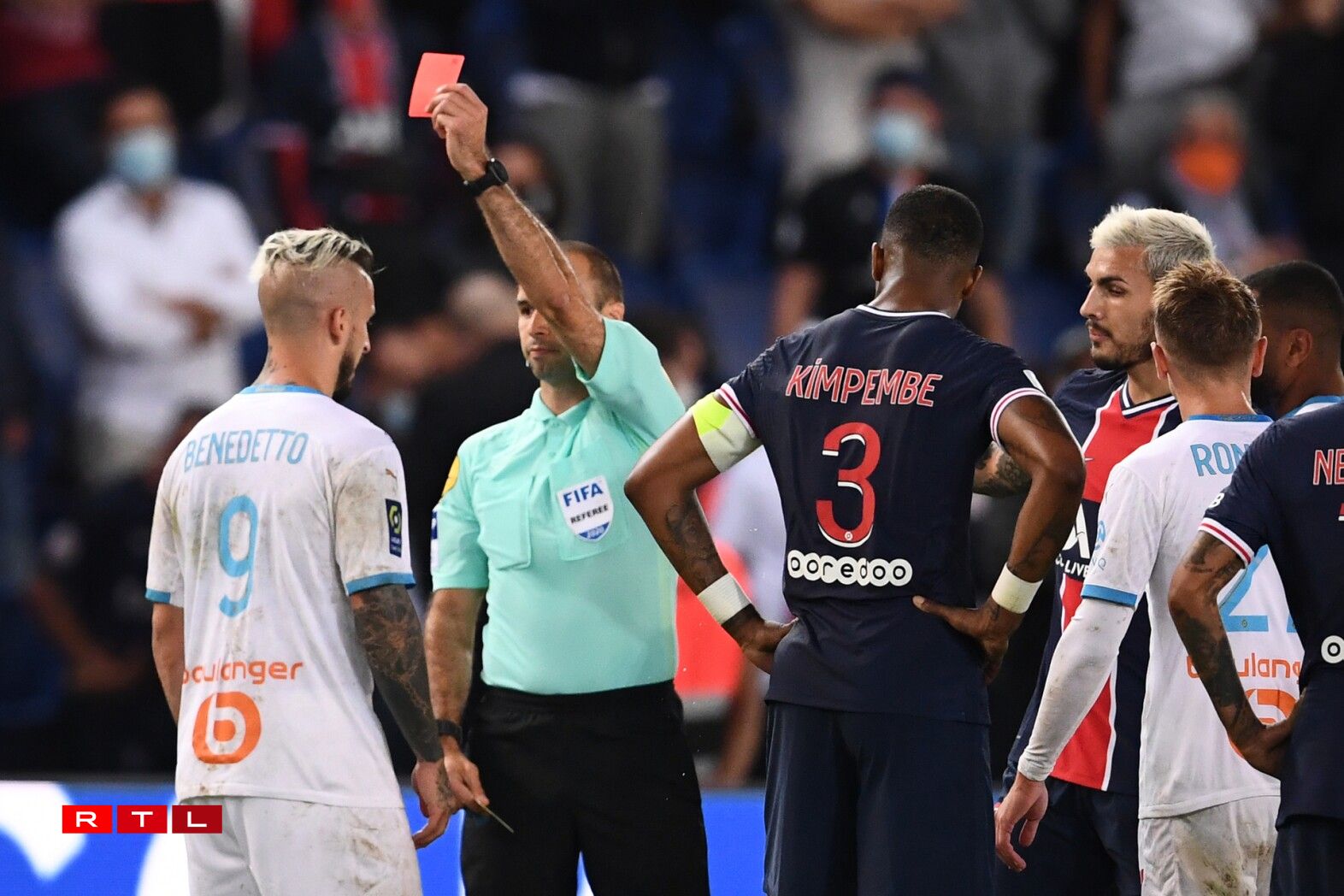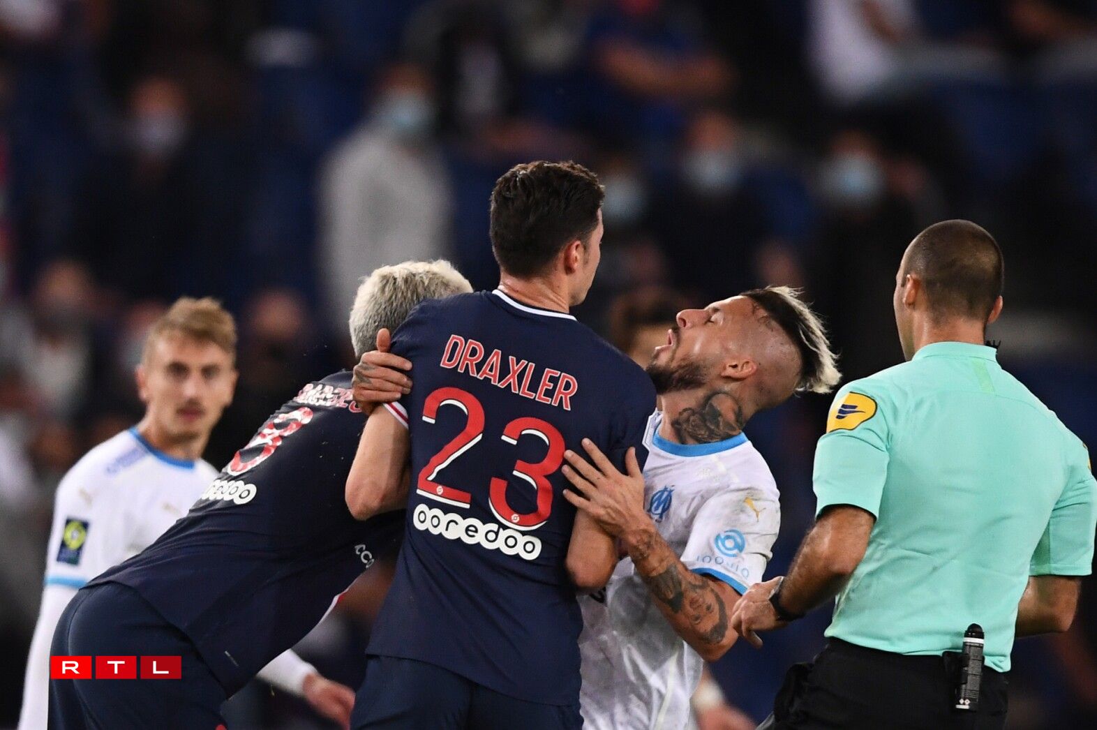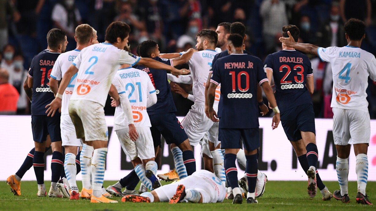 Den Arbitter vum Match, Brisard, hat e bëssi méi ze dinn an dësem Spëtzematch zu Paräis. Laang hat et no engem “normale” Futtballmatch ausgesinn. E puer giel Kaarte fir de PSG, e puer fir Olympique Marseille an e Gol fir d’Gäscht aus dem Süde vu Frankräich no 31 Minutten duerch den Thauvin.