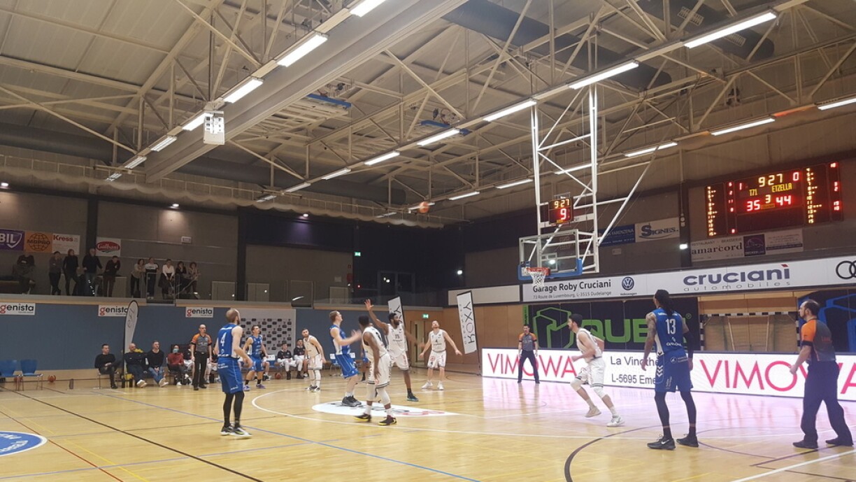 D’Lokalekipp war vun Ufank u gutt ënnerwee a konnt an enger eesäiteger Partie den 1. Véierel mat 26:15 fir sech entscheeden. Och am 2. Véierel (28:14) huet d’Kierpersprooch gestëmmt an et ass virun allem aus enger zolitter Defense eraus no vir gespillt ginn: 54:29 no den zweeten 10 Minutten.