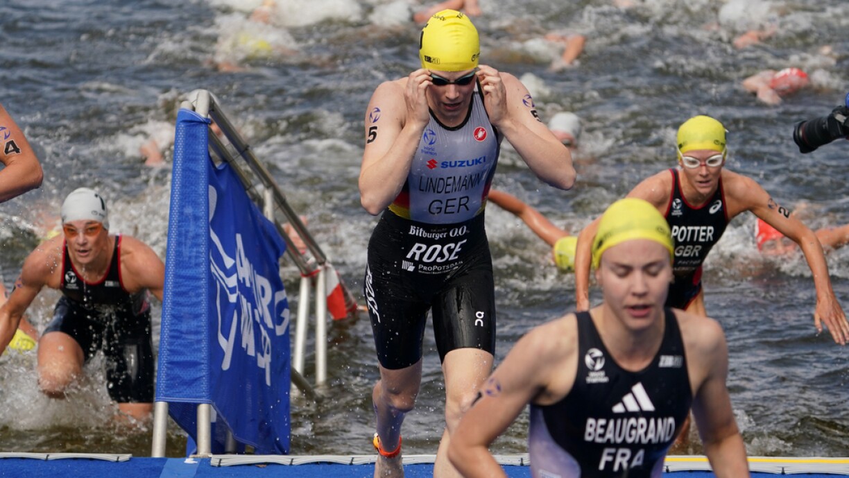 Cassandre Beaugrand huet sech zu Hamburg iwwer 300 Meter Schwammen, 7,5 Kilometer Vëlo an 1,7 Kilometer Lafen bei den Dammen d’Goldmedail am Triathlon-Sprint geséchert. Op déi zweete Plaz kennt d’Brittin Beth Potter. Déi leschte Plaz um Podium ass fir d’Laura Lindemann aus Däitschland. Aus Lëtzebuerger Siicht koum d’Jeanne Lehair op déi 11. Plaz.